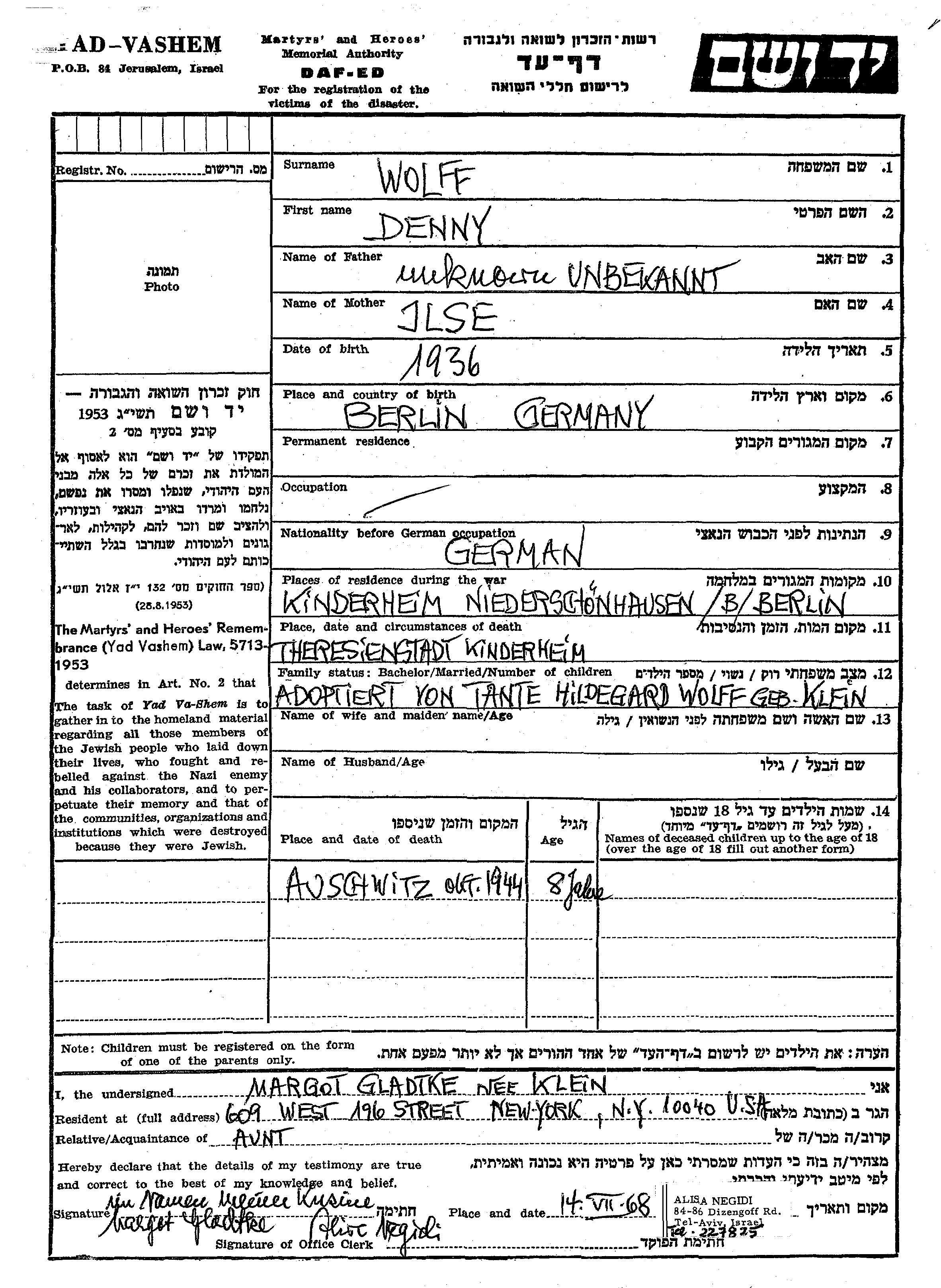Имя неизвестно Вольф родился/родилась Дани Денни. Ребенок. Место во время войны: Берлин, Германия.