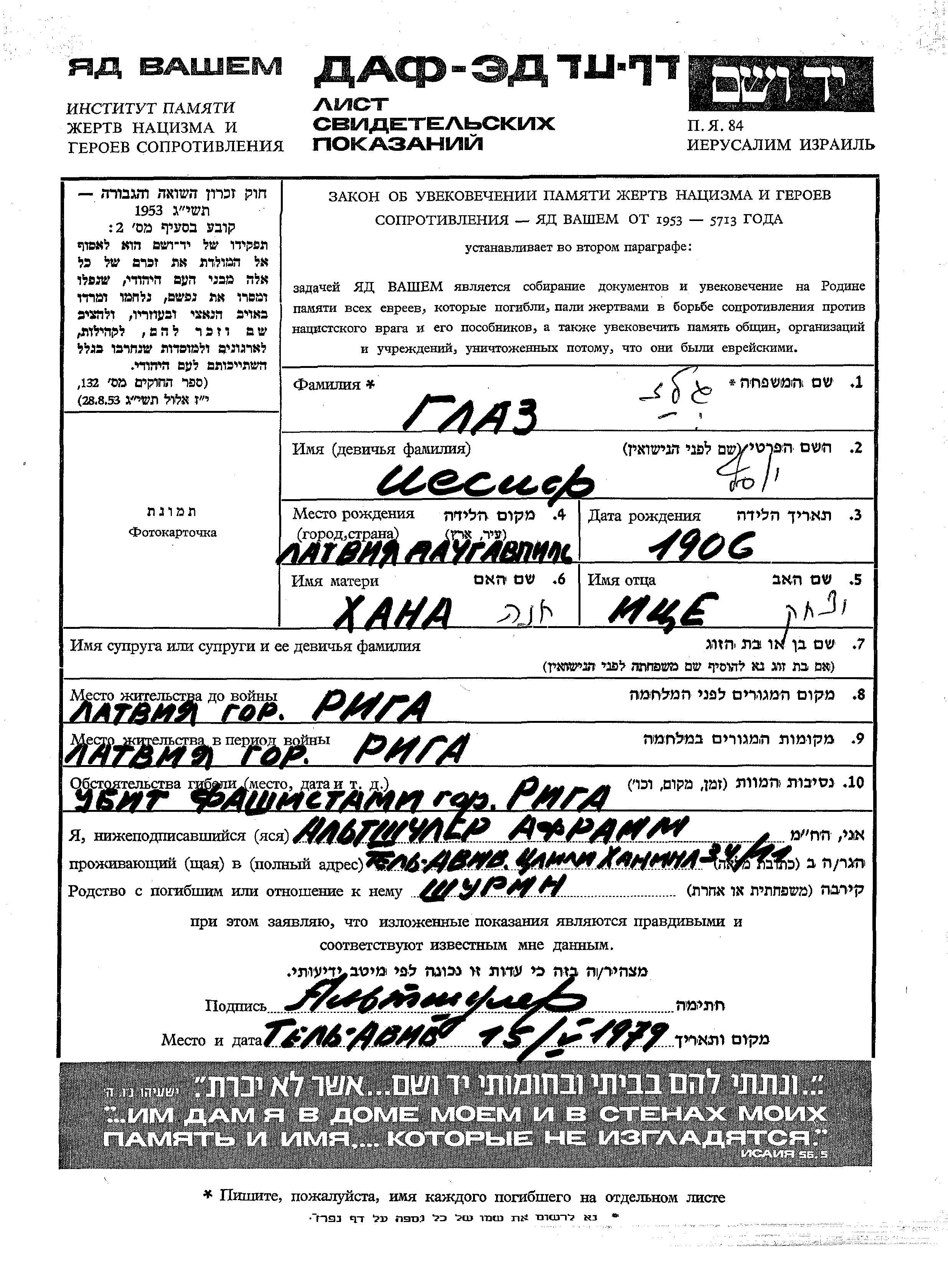 Яд Вашем - Листы свидетельских показаний Мемориального фонда