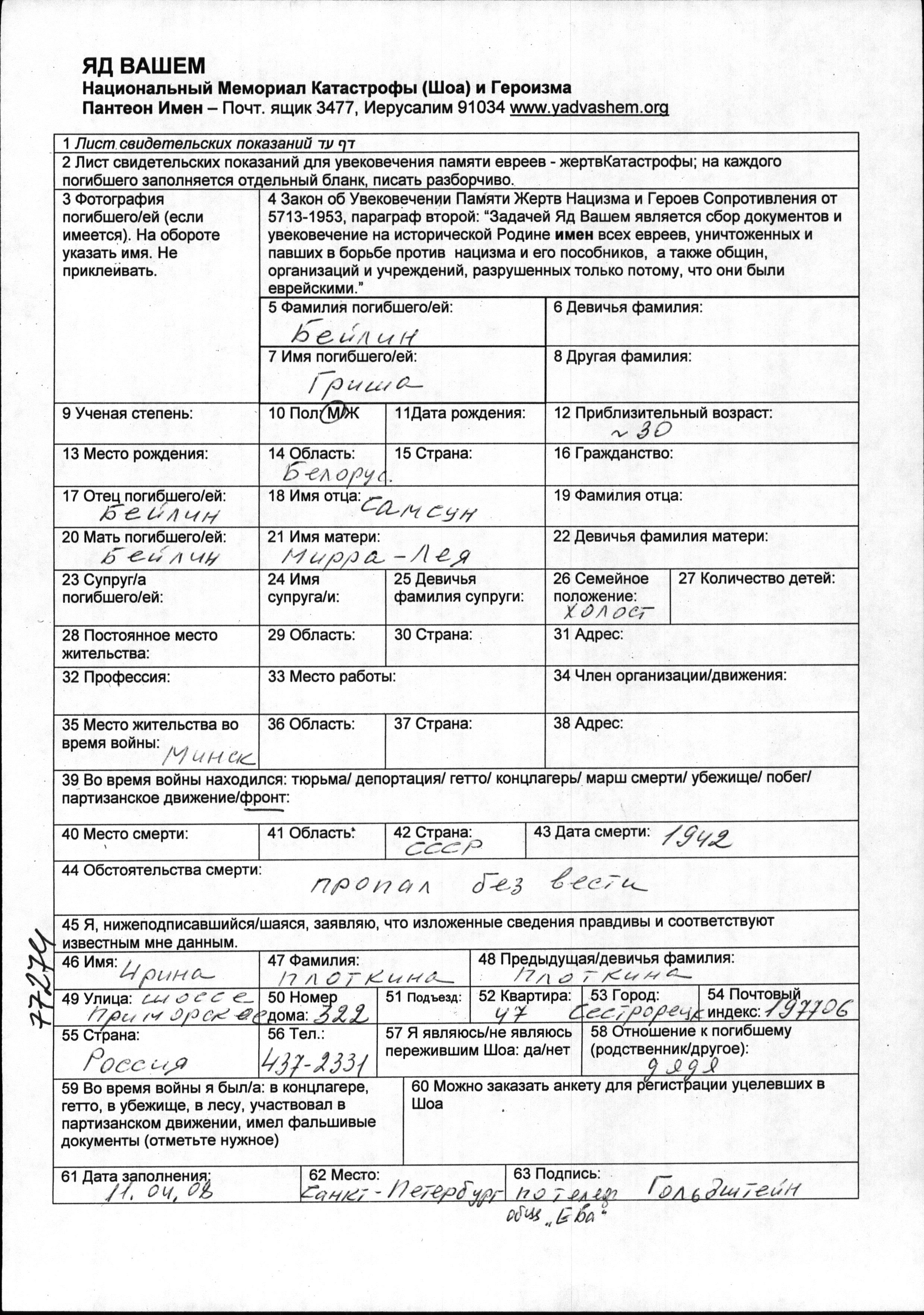 Поиск подателя Листа свидетельских показаний. Поиск по любому имени, включая уменьшительное или прозвище
