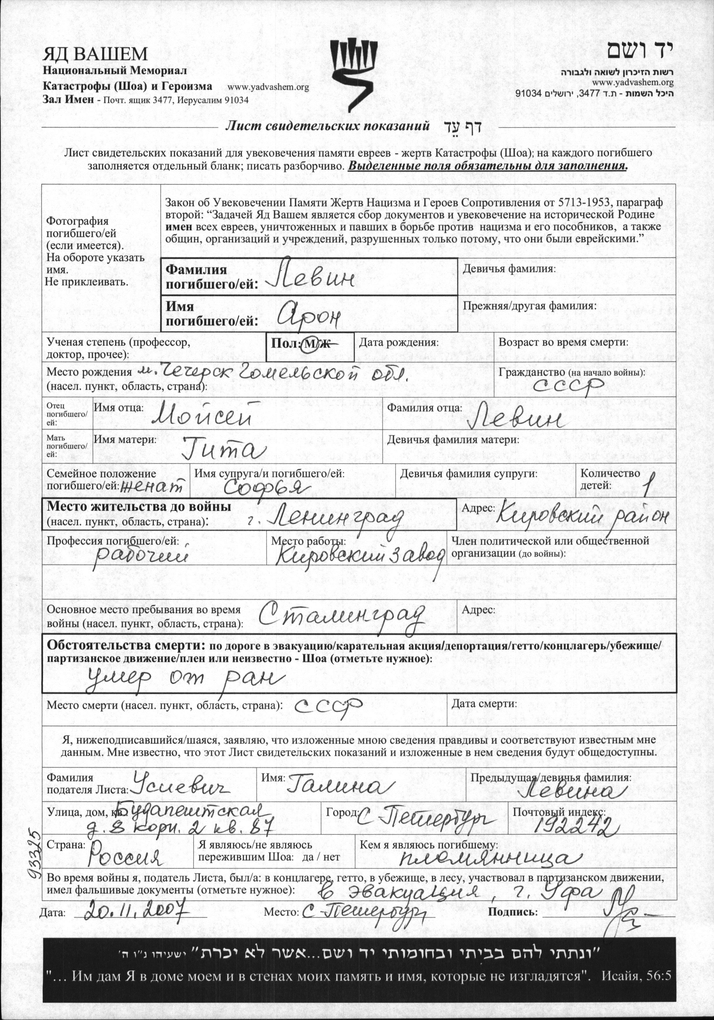 Поиск подателя Листа свидетельских показаний. Поиск по любому имени, включая уменьшительное или прозвище