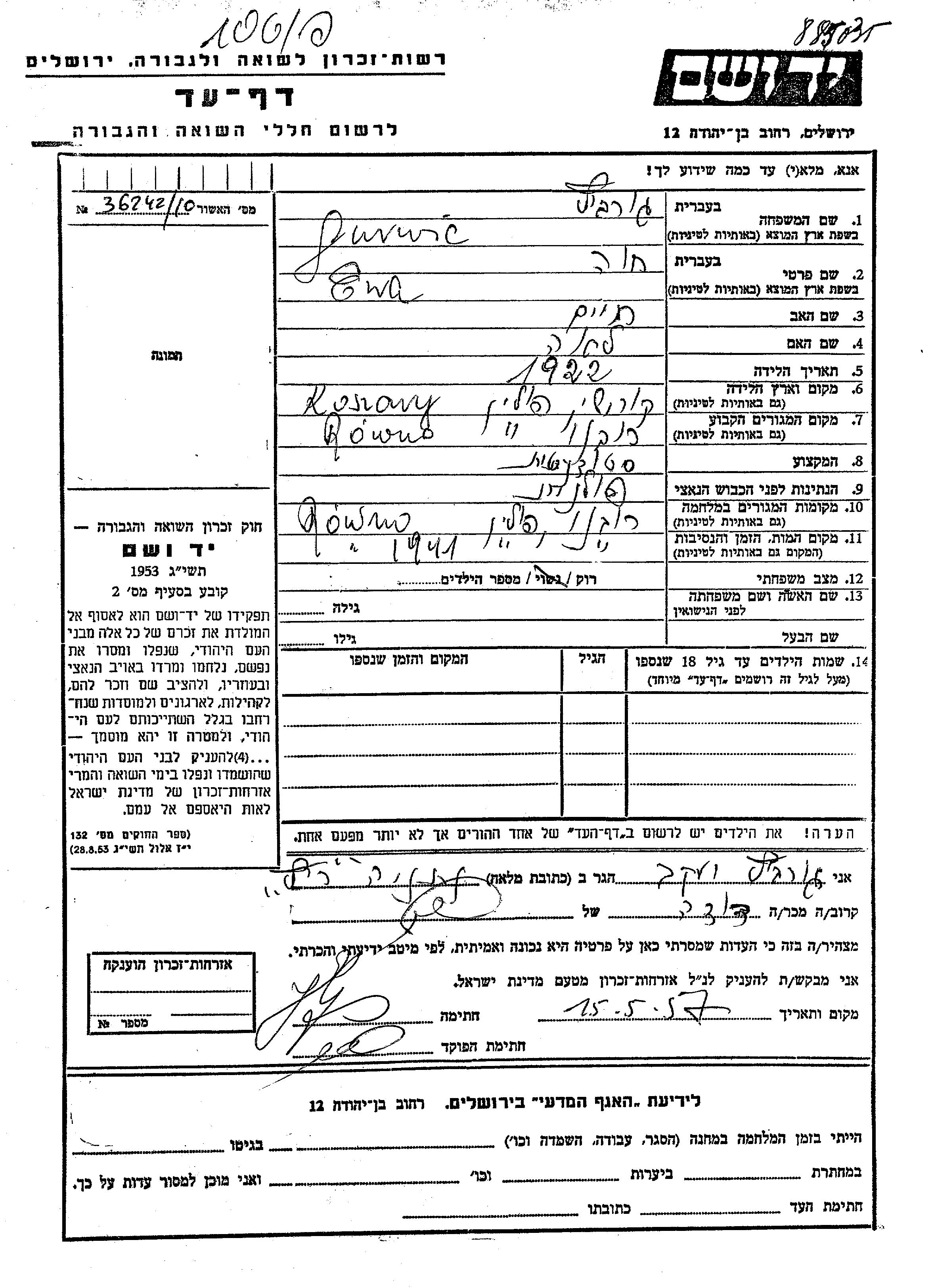 Яд Вашем - Листы свидетельских показаний Мемориального фонда