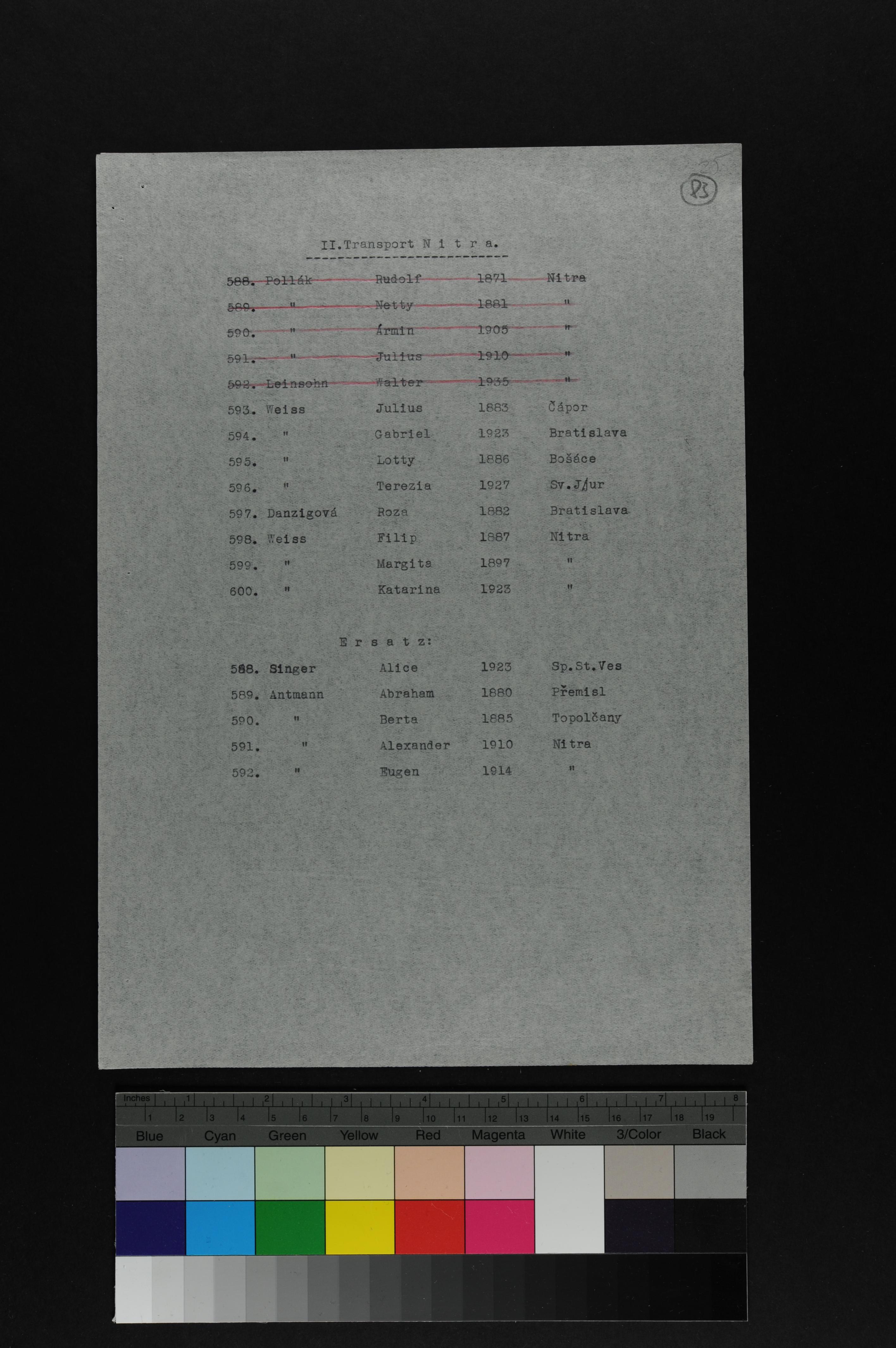 Поллак Лейнсон Вальтер 1935 Нитра, Чехословакия Список преследуемых / пострадавших лиц