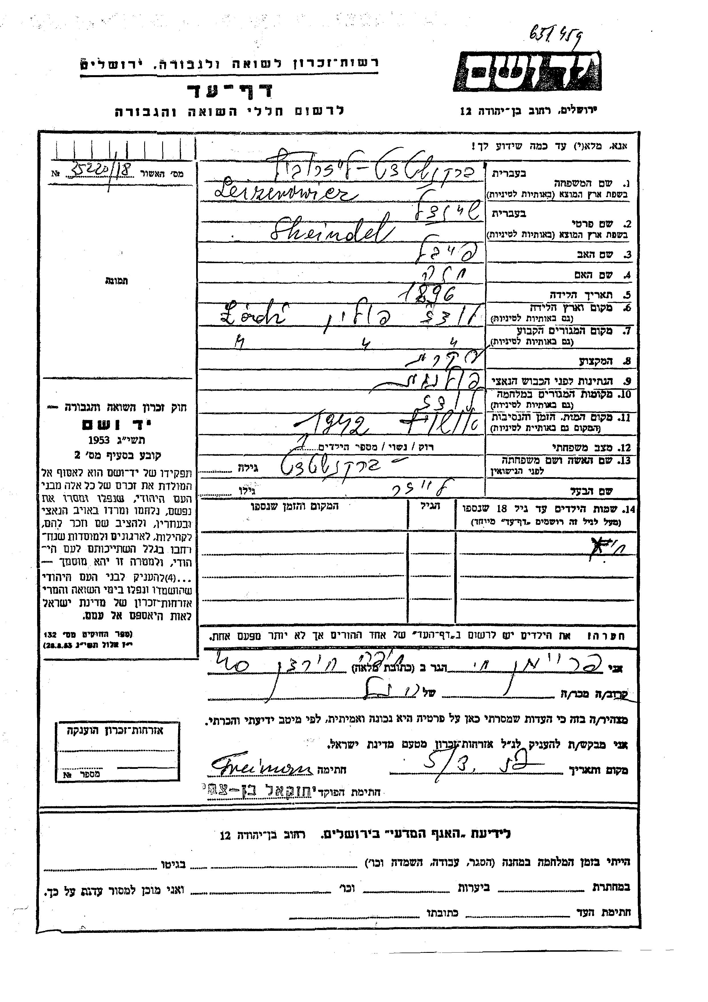 Яд Вашем - Листы свидетельских показаний Мемориального фонда