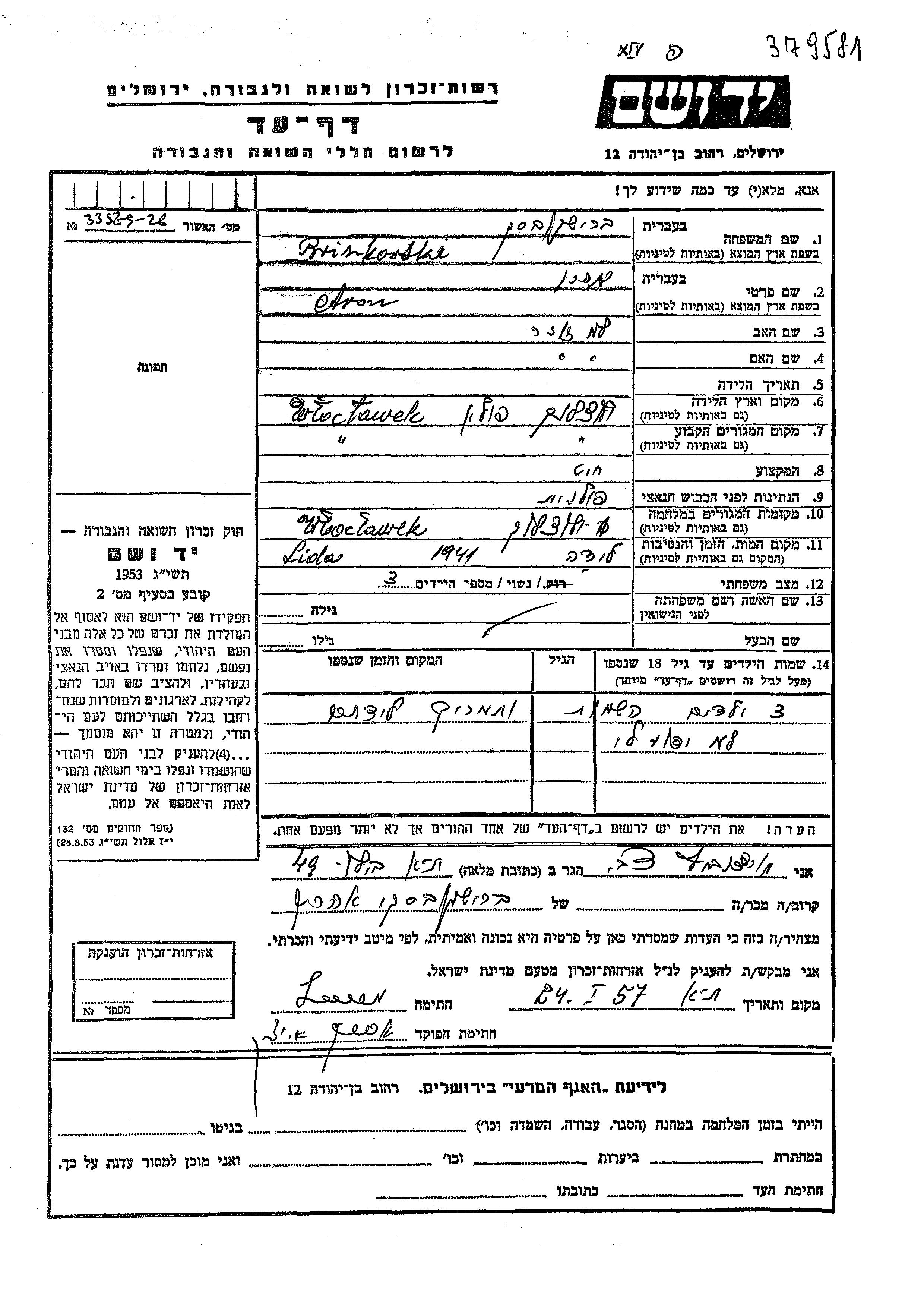 Яд Вашем - Листы свидетельских показаний Мемориального фонда