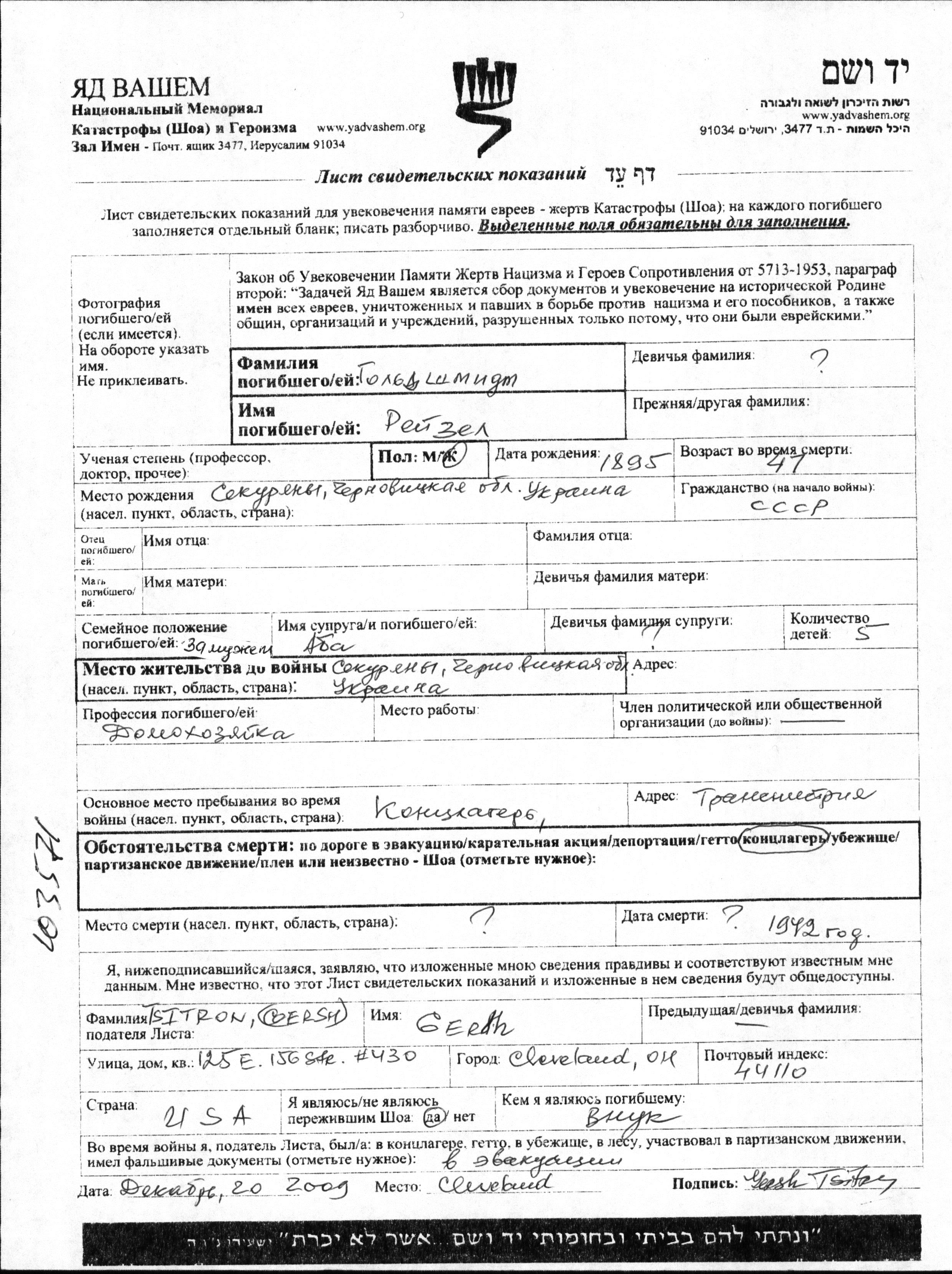 Поиск по фамилии подателя Листа свидетельских показаний. Этот поиск включает в себя также результаты по девичьей фамилии