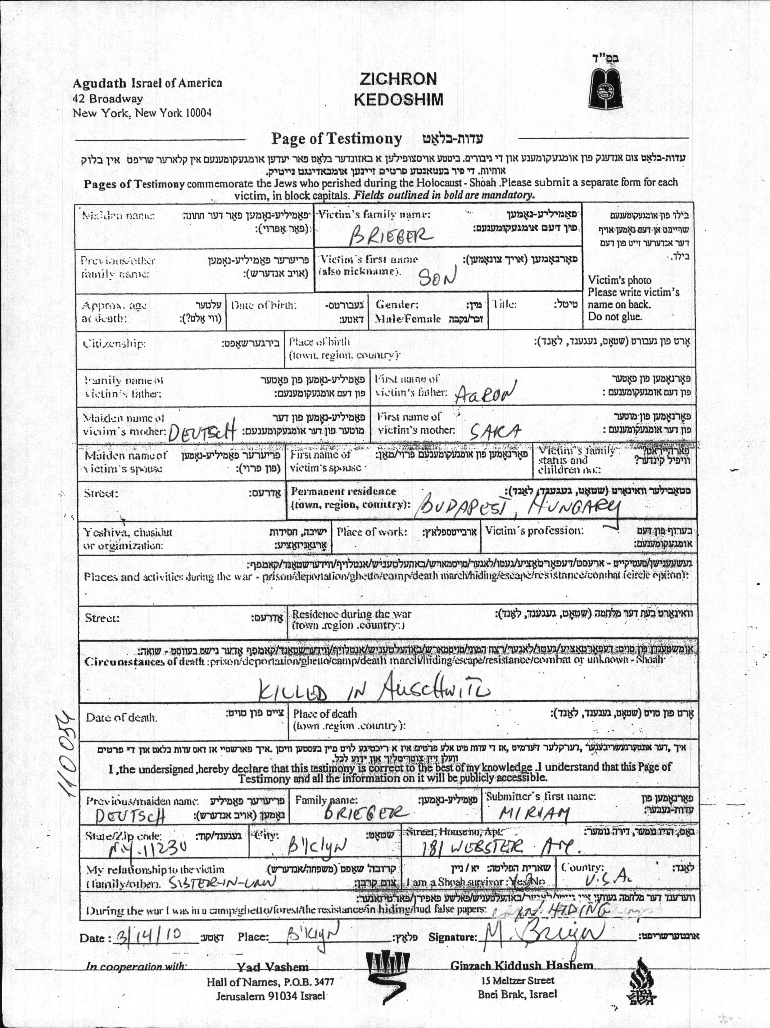 Поиск подателя Листа свидетельских показаний. Поиск по любому имени, включая уменьшительное или прозвище