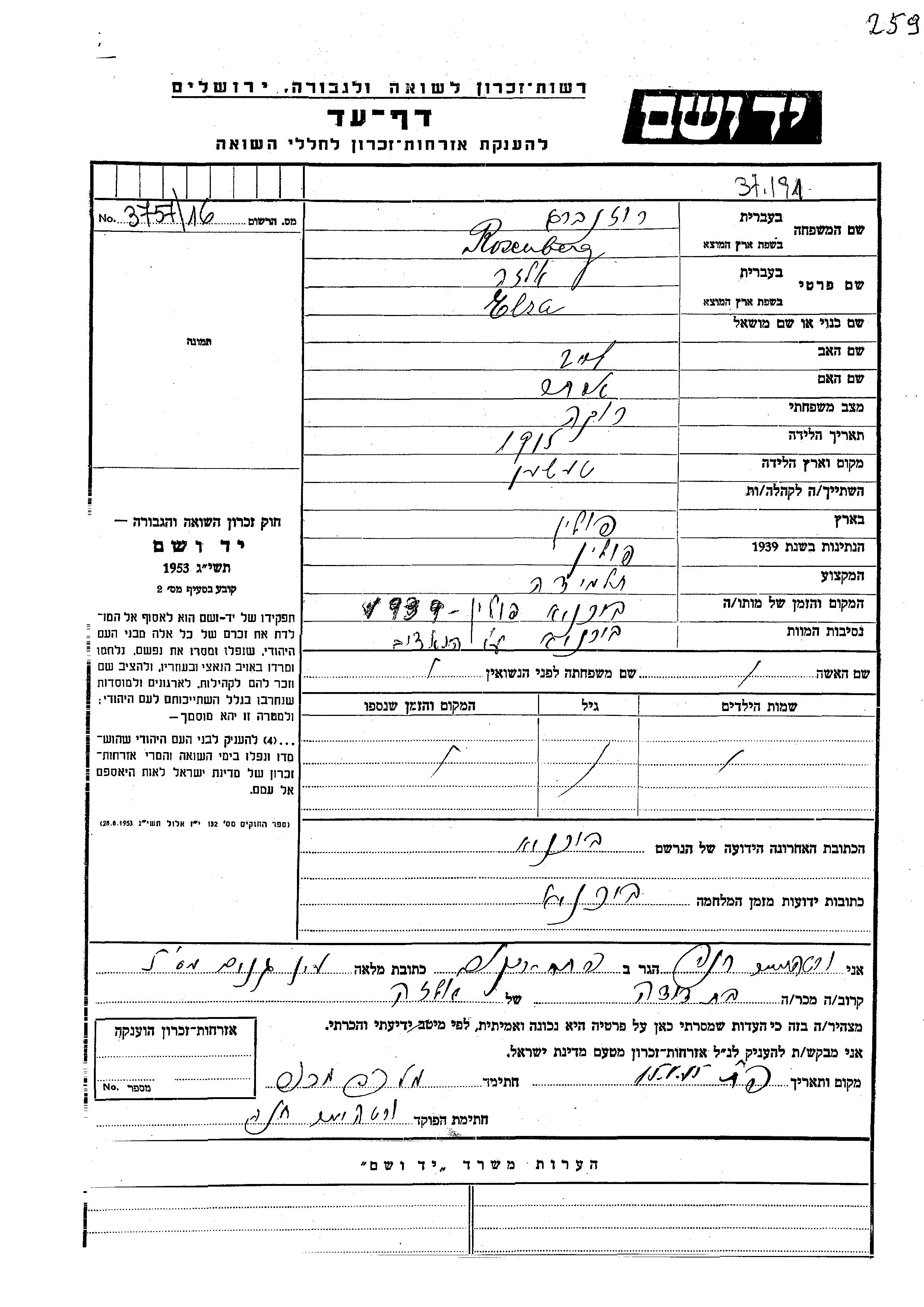 Яд Вашем - Листы свидетельских показаний Мемориального фонда