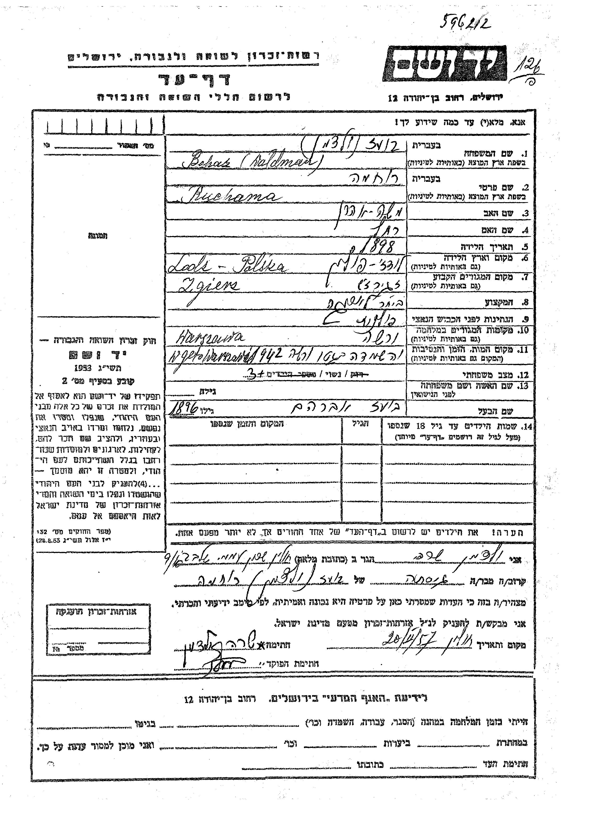 Рухама Боаз, девичья фамилия Вальдман, место рождения: Лодзь, Польша. Отец: Моше Арон, mать:Рахель. Женат / замужем. Место жительства до войны: Згеж, Польша. Место во время войны: Варшава, Польша.