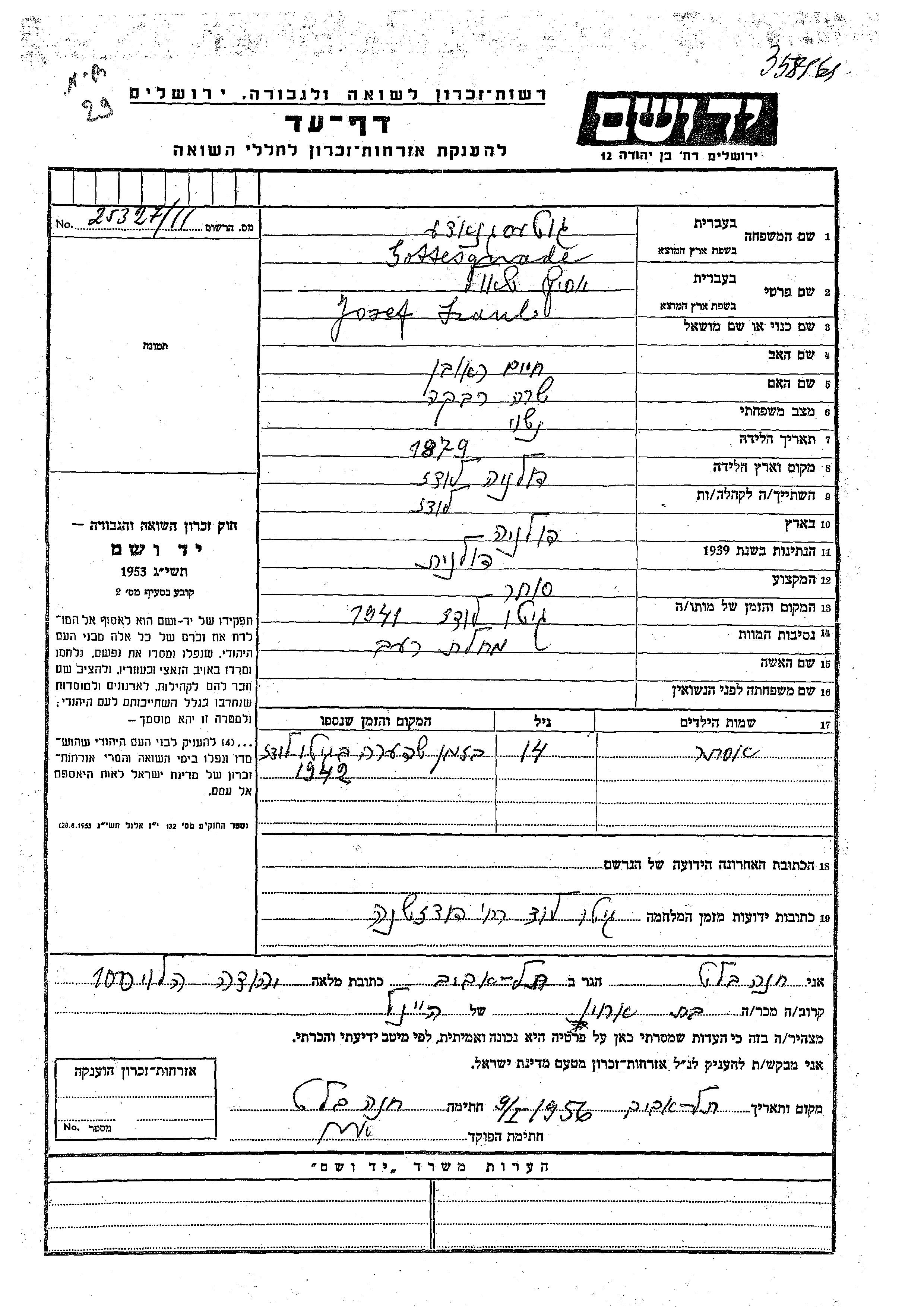 Яд Вашем - Листы свидетельских показаний Мемориального фонда