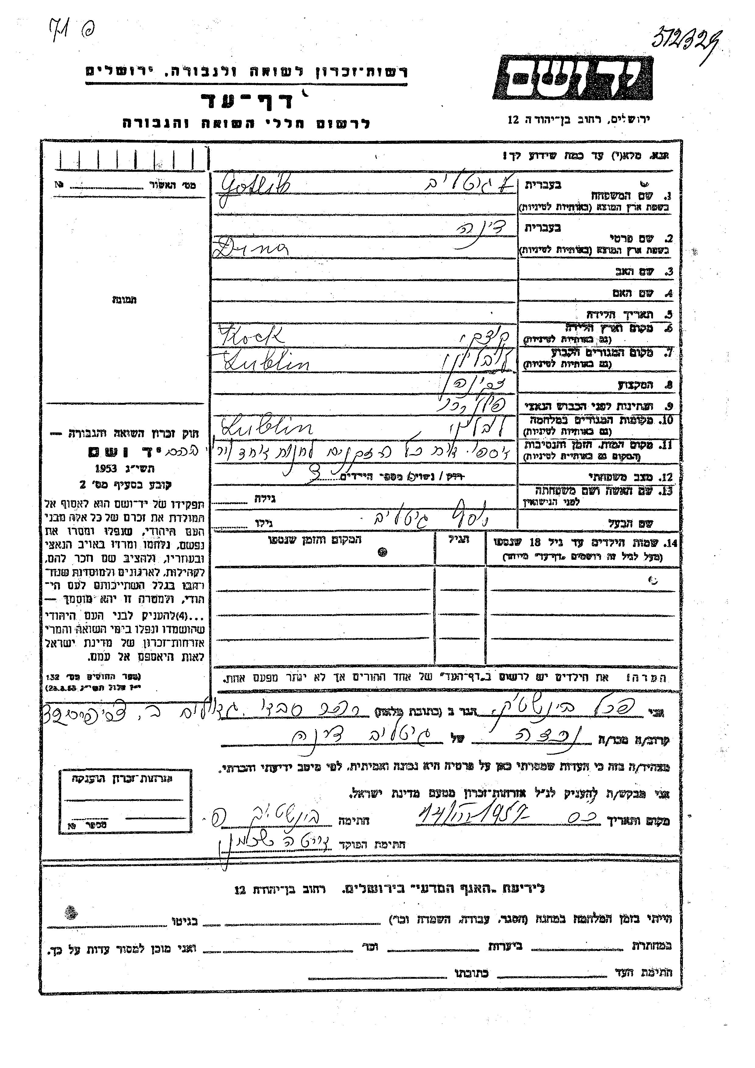 Готлиб Дина Люблин, Польша Лист свидетельских показаний