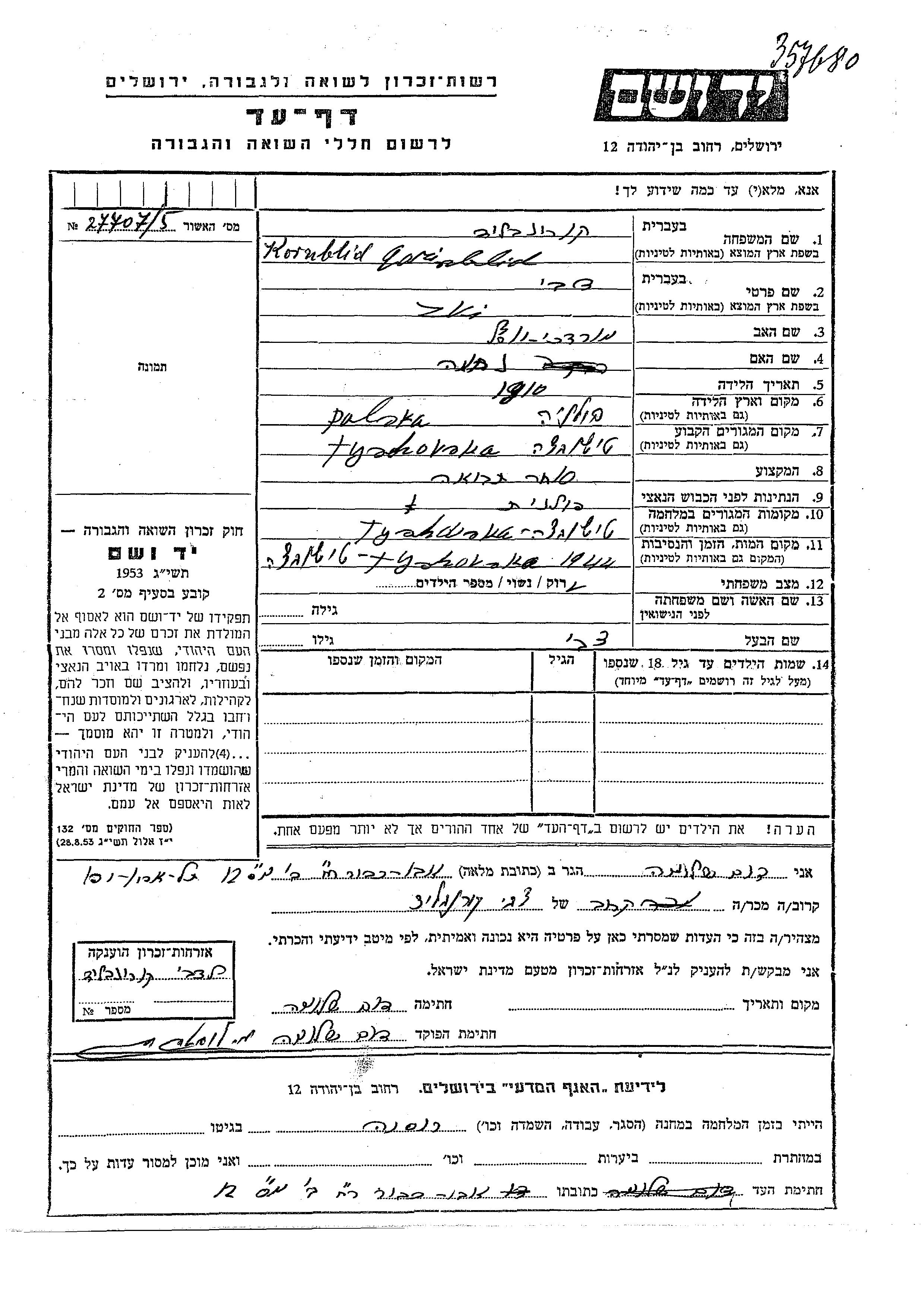 Яд Вашем - Листы свидетельских показаний Мемориального фонда