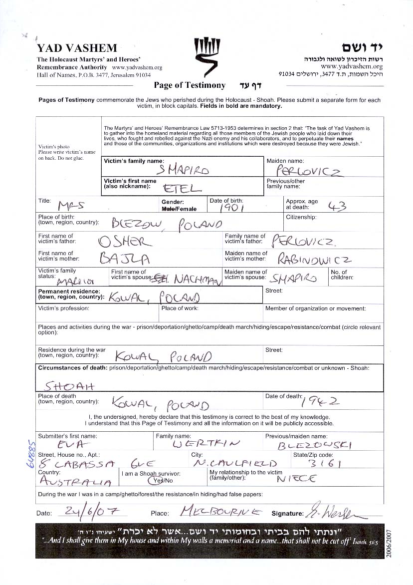 Во время Шоа евреев уничтожали разными способами: газовые камеры, расстрелы, их заживо хоронили или сжигали, непосильным принудительным трудом, голодом, эпидемиями, отсутствием минимальных гигиенических условий и медицинского обслуживания, и т.д. Некоторые евреи добровольно расстались со своей жизнью, чтобы избежать ареста и дальнейших преследований или чтобы покончить с безысходностью и бесконечными страданиями.