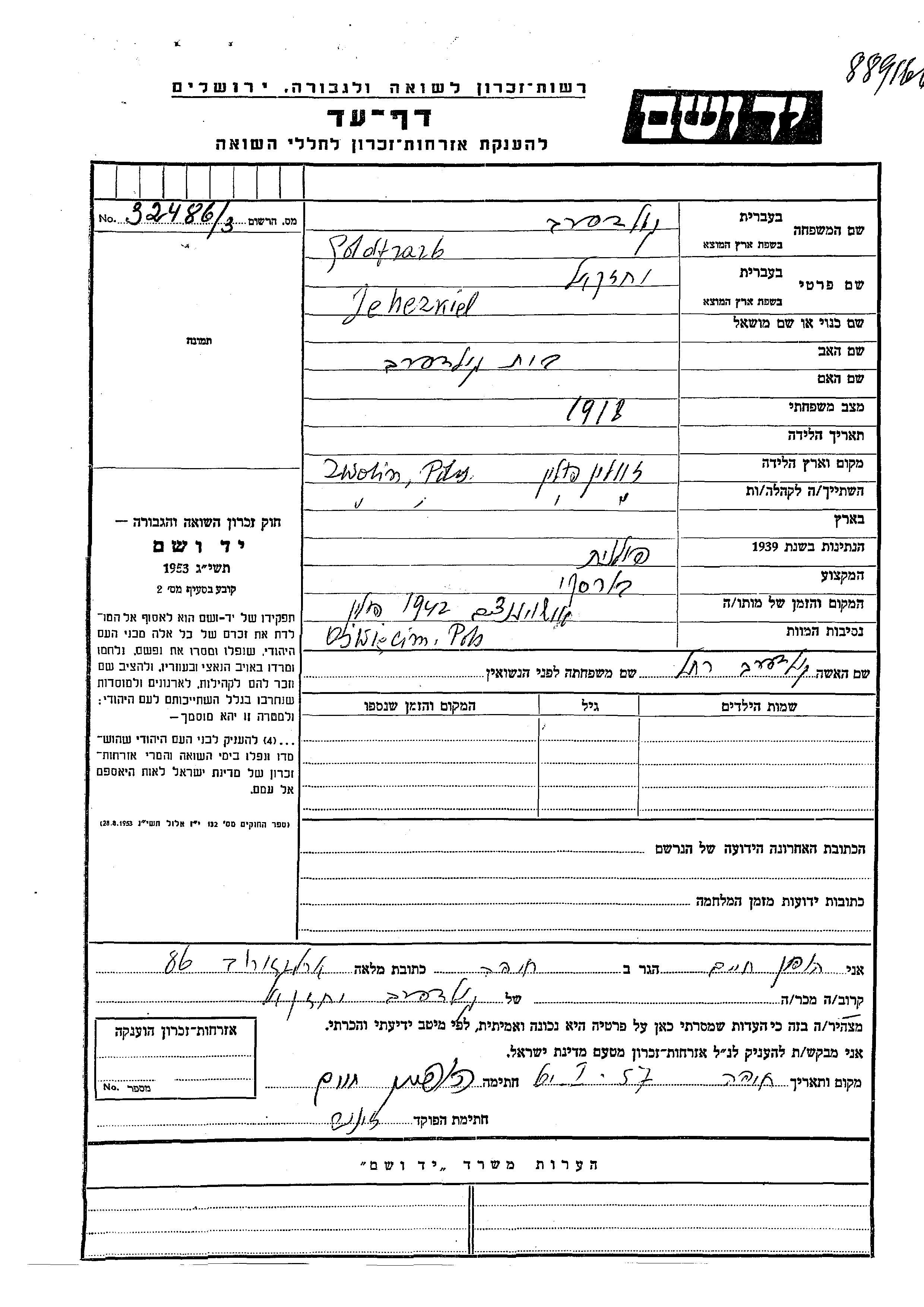 Яд Вашем - Листы свидетельских показаний Мемориального фонда