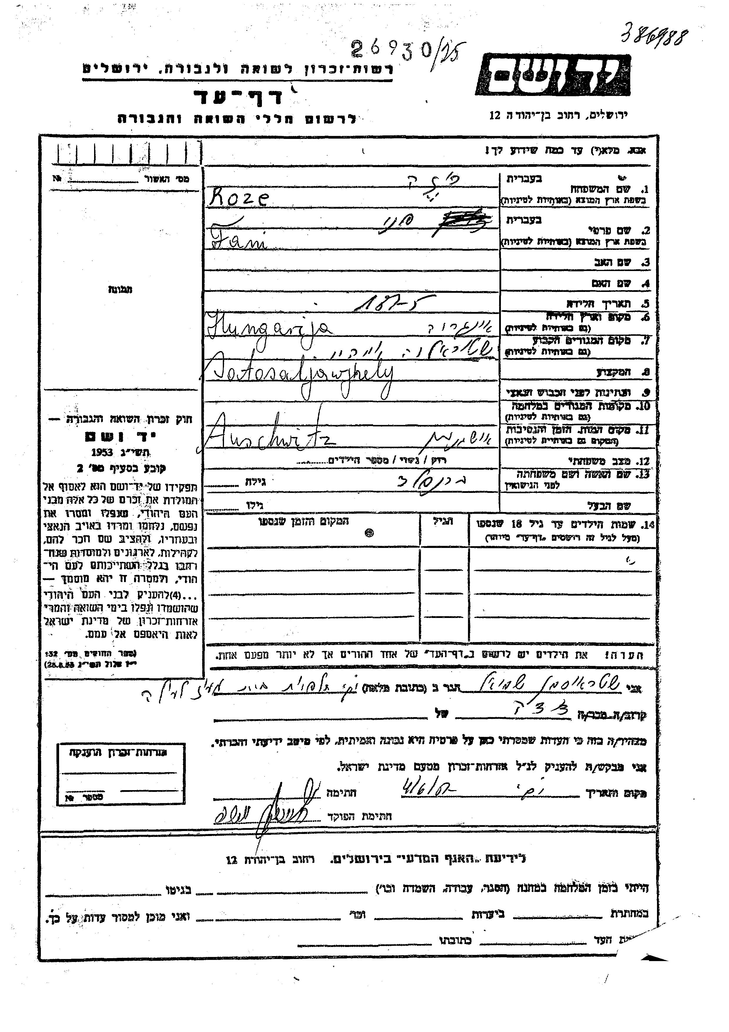 Фани Розе Руза, девичья фамилия Бернфельд, место рождения: Венгрия. Женат / замужем. Место жительства до войны: Шаторальяуйхей, Венгрия.