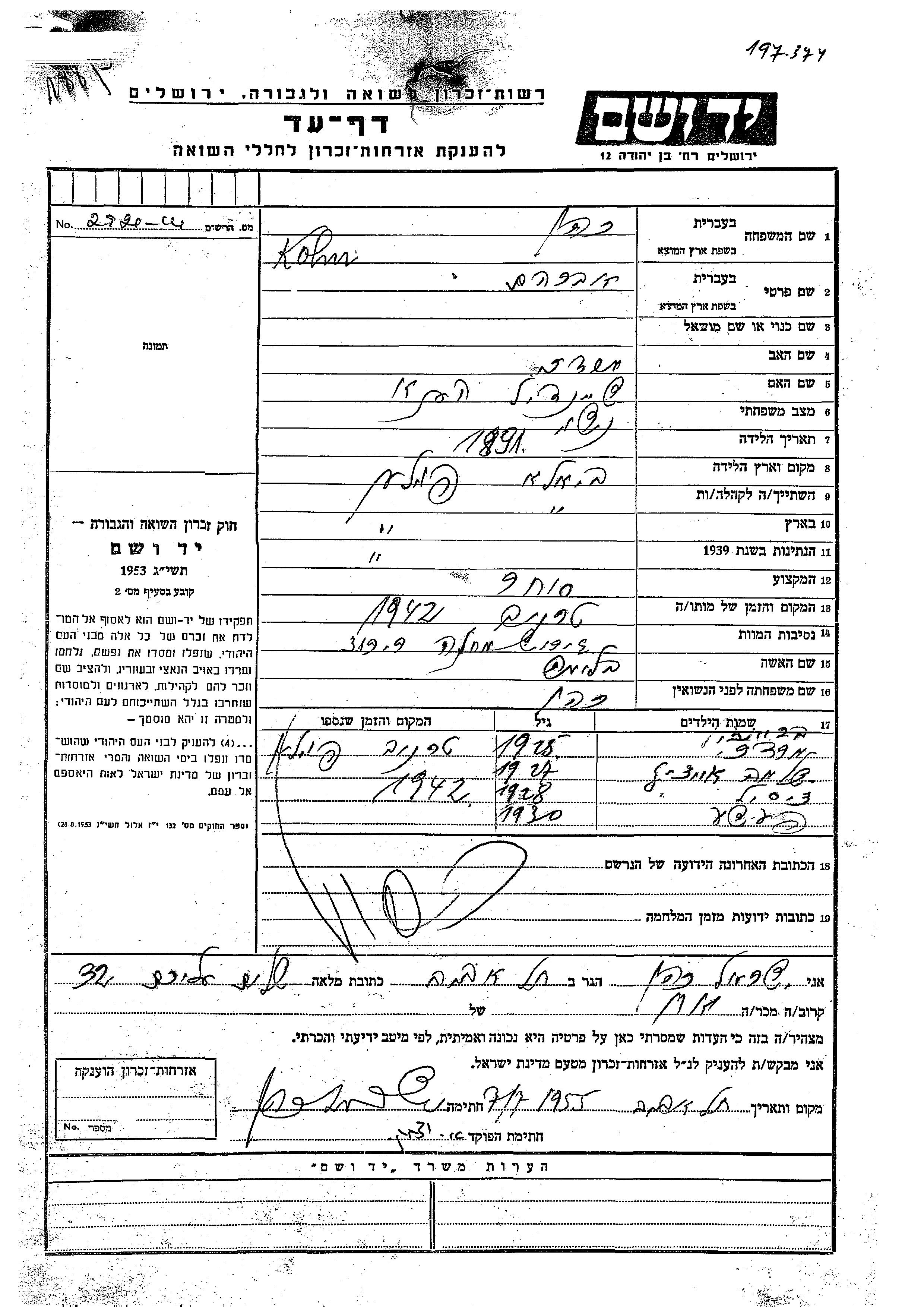 Яд Вашем - Листы свидетельских показаний Мемориального фонда