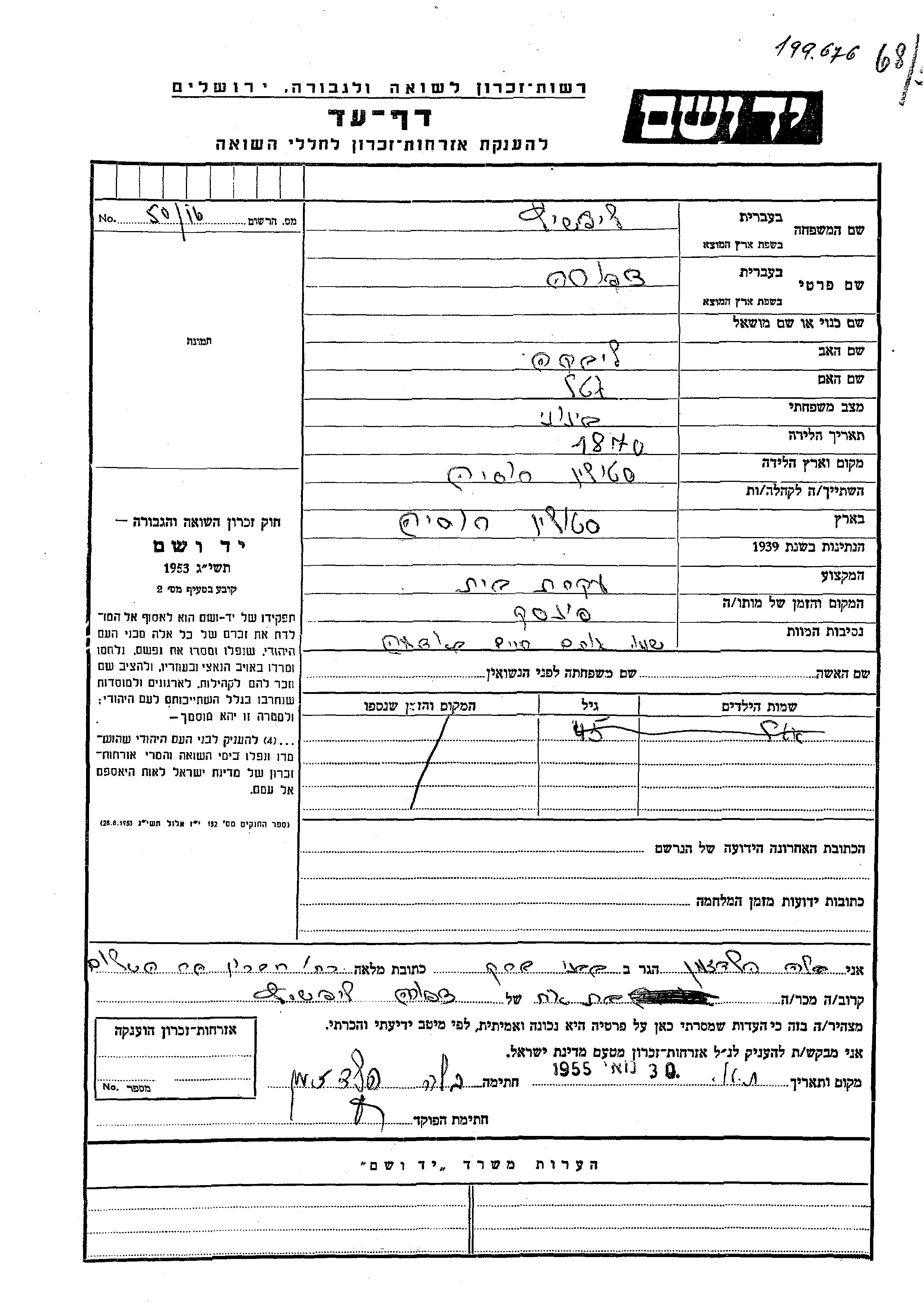 Яд Вашем - Листы свидетельских показаний Мемориального фонда