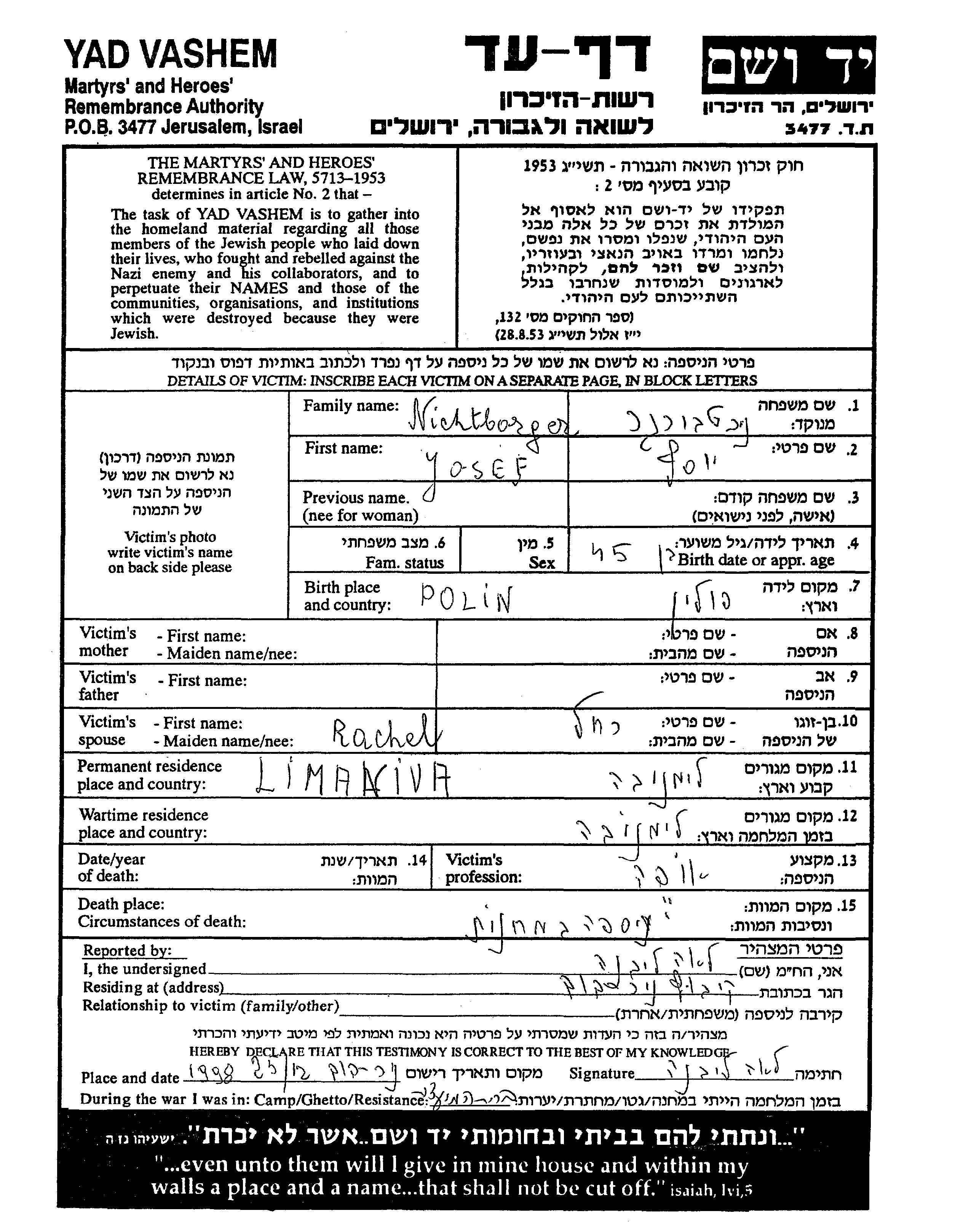 Во время Шоа евреев уничтожали разными способами: газовые камеры, расстрелы, их заживо хоронили или сжигали, непосильным принудительным трудом, голодом, эпидемиями, отсутствием минимальных гигиенических условий и медицинского обслуживания, и т.д. Некоторые евреи добровольно расстались со своей жизнью, чтобы избежать ареста и дальнейших преследований или чтобы покончить с безысходностью и бесконечными страданиями.