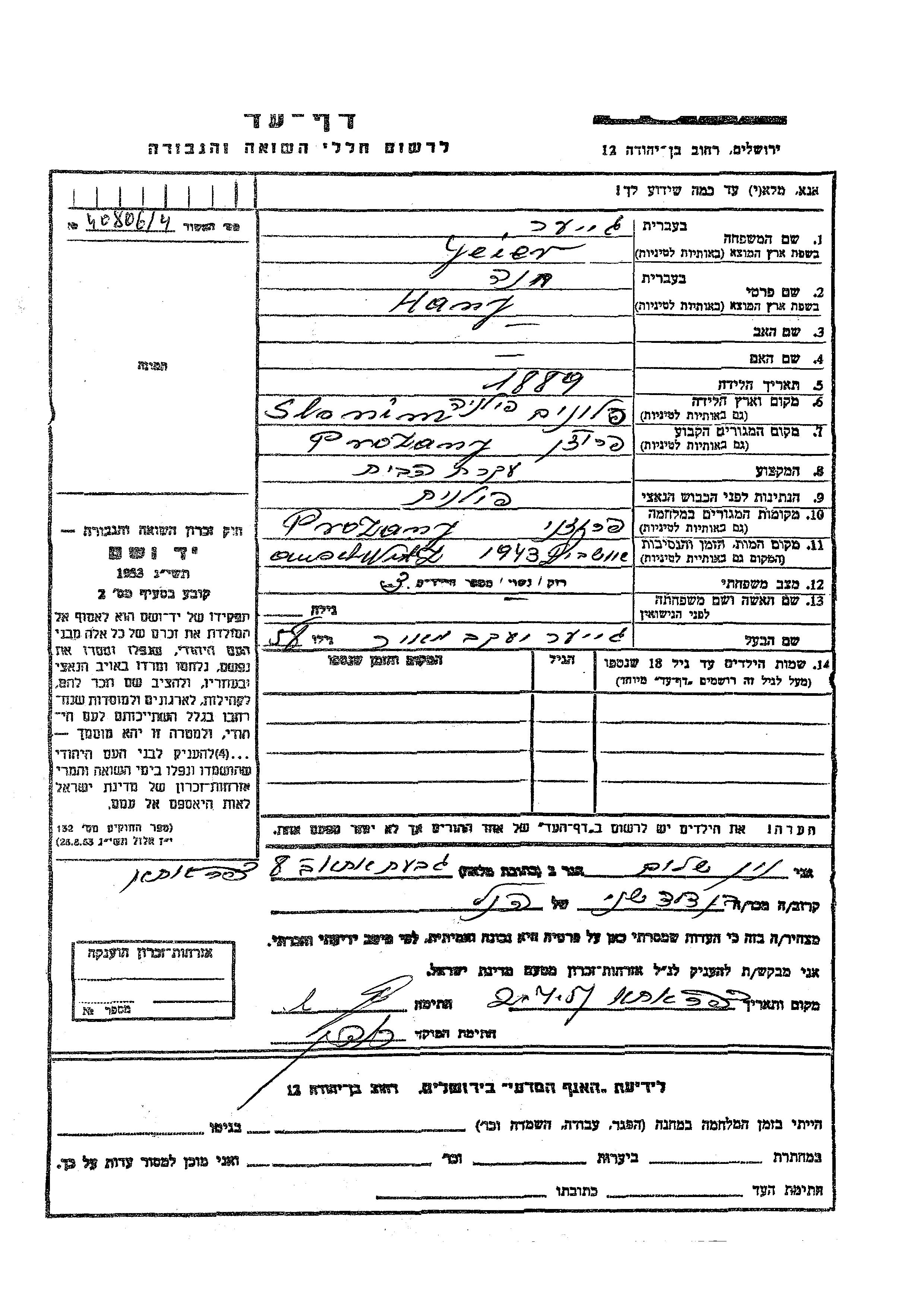 Яд Вашем - Листы свидетельских показаний Мемориального фонда