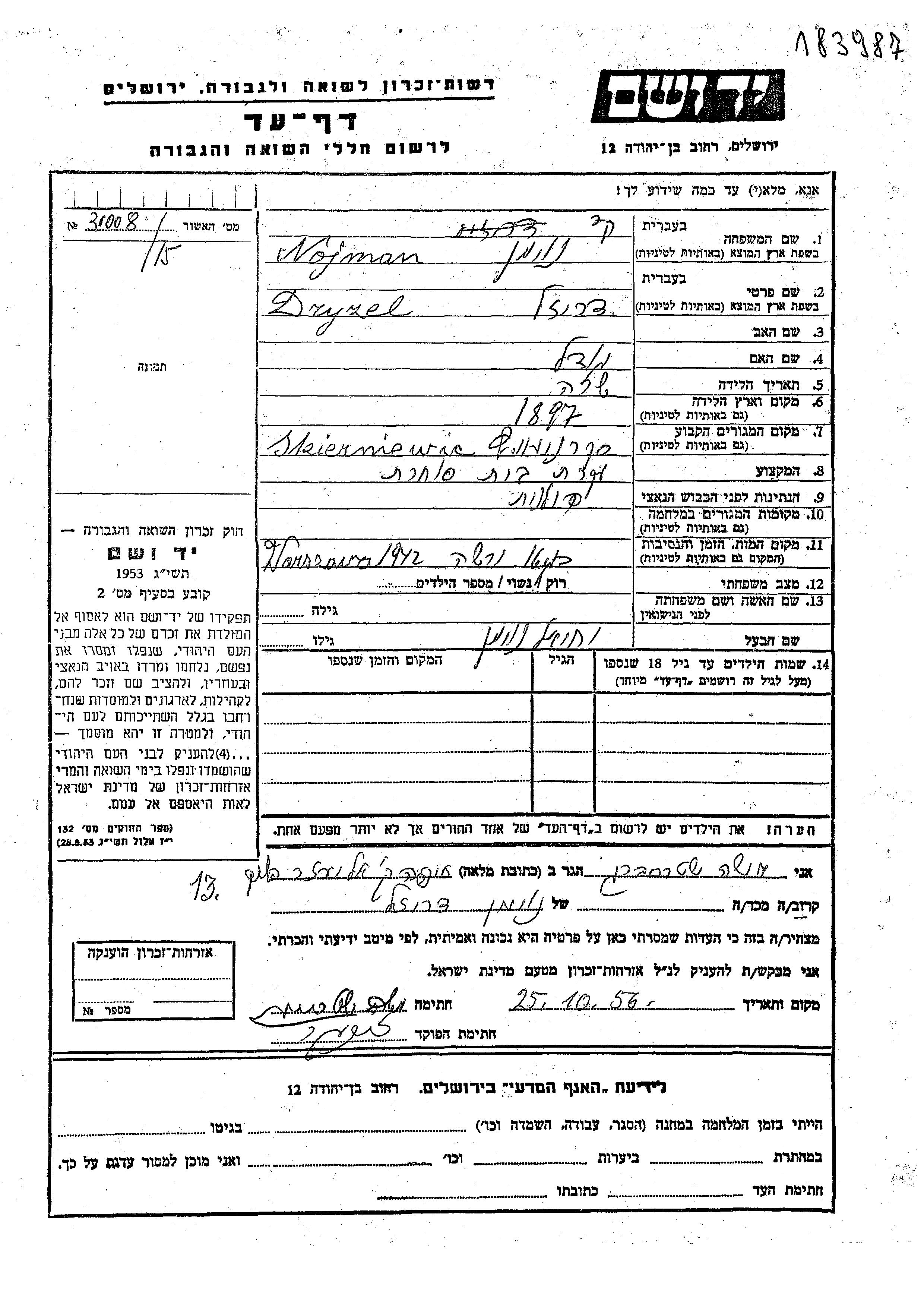Нойман Дрейза 1897 Скерневице, Польша Лист свидетельских показаний