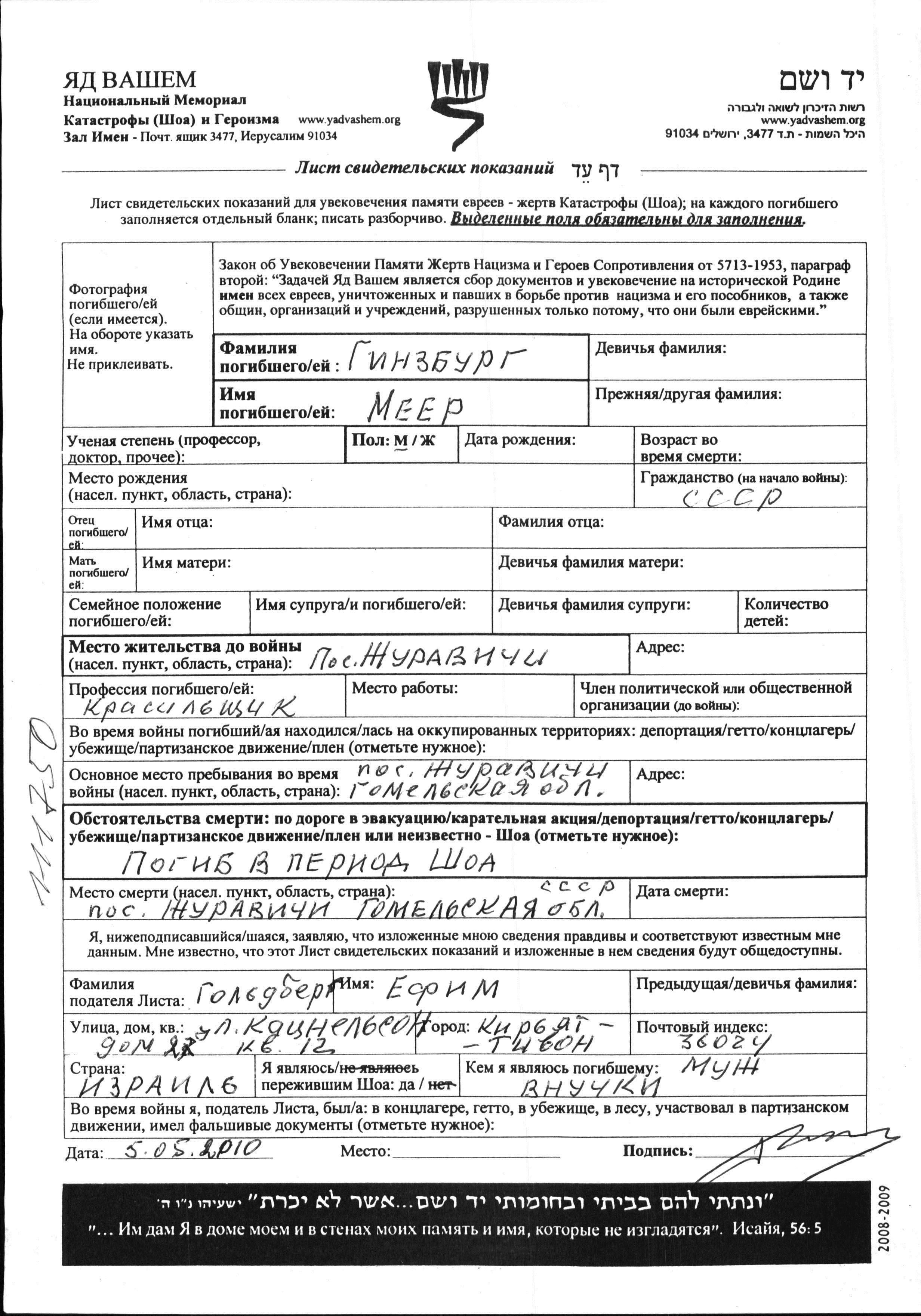 Поиск подателя Листа свидетельских показаний. Поиск по любому имени, включая уменьшительное или прозвище