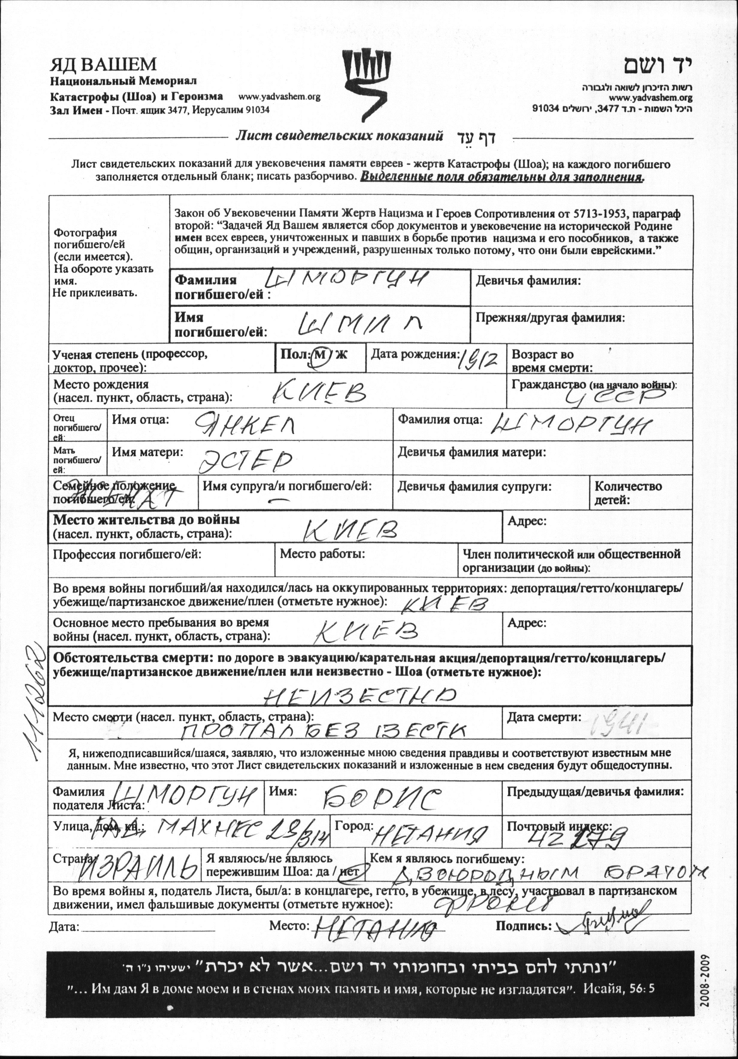 Во время войны/Шоа: