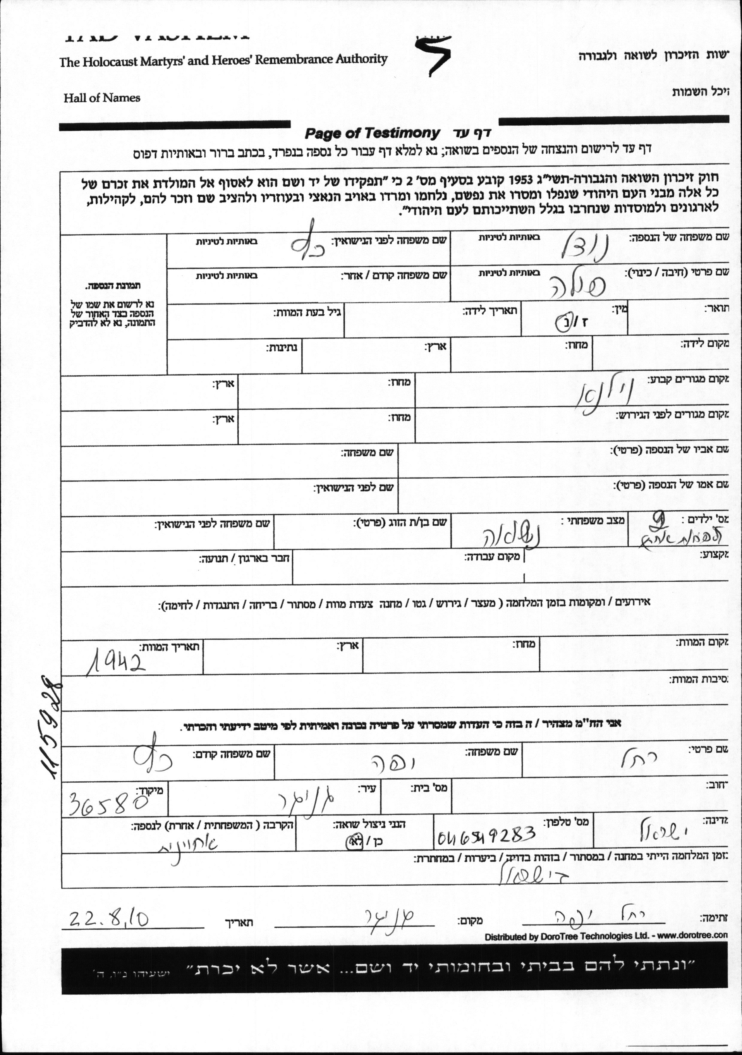 Яд Вашем - Листы свидетельских показаний Мемориального фонда