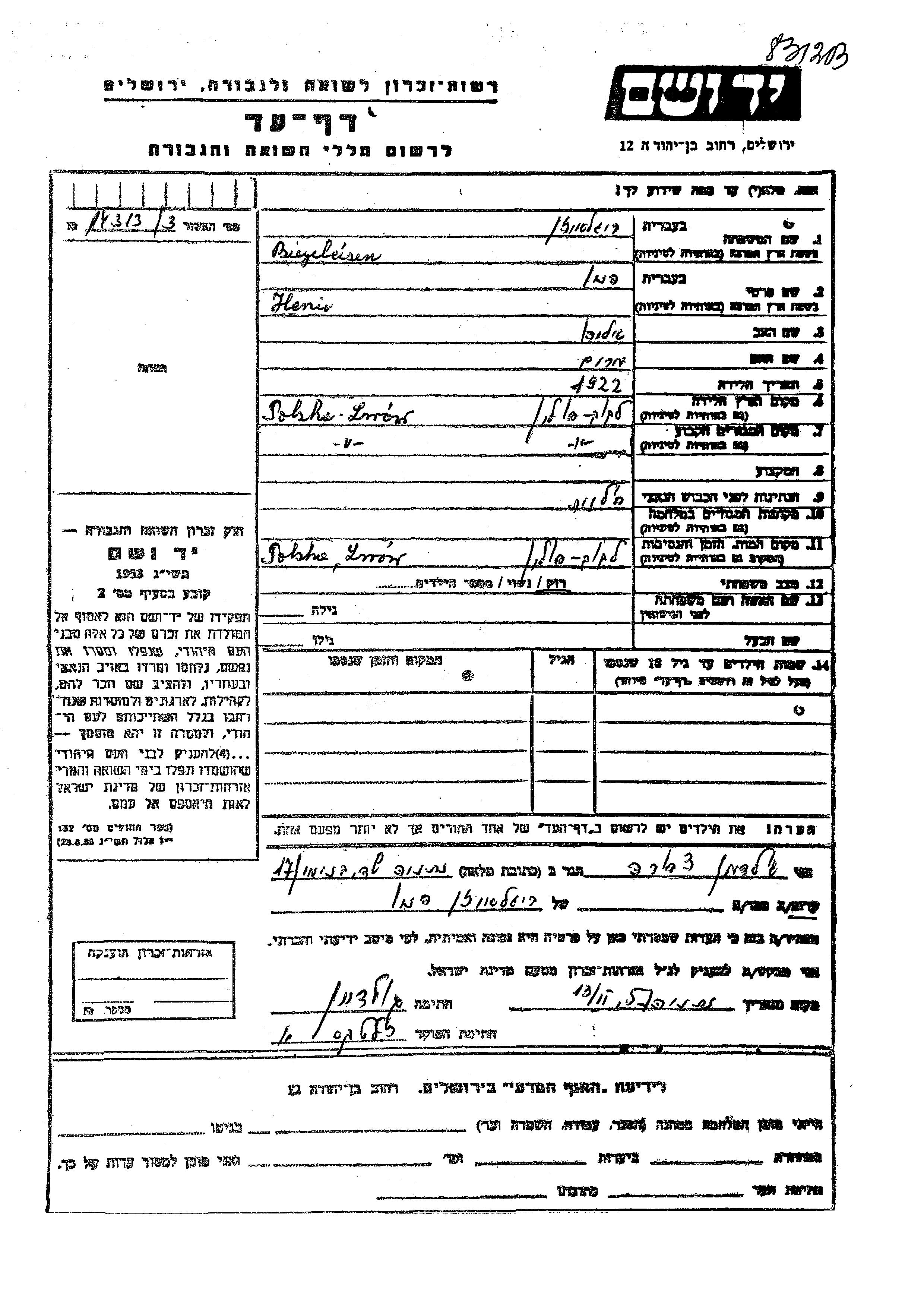 Яд Вашем - Листы свидетельских показаний Мемориального фонда