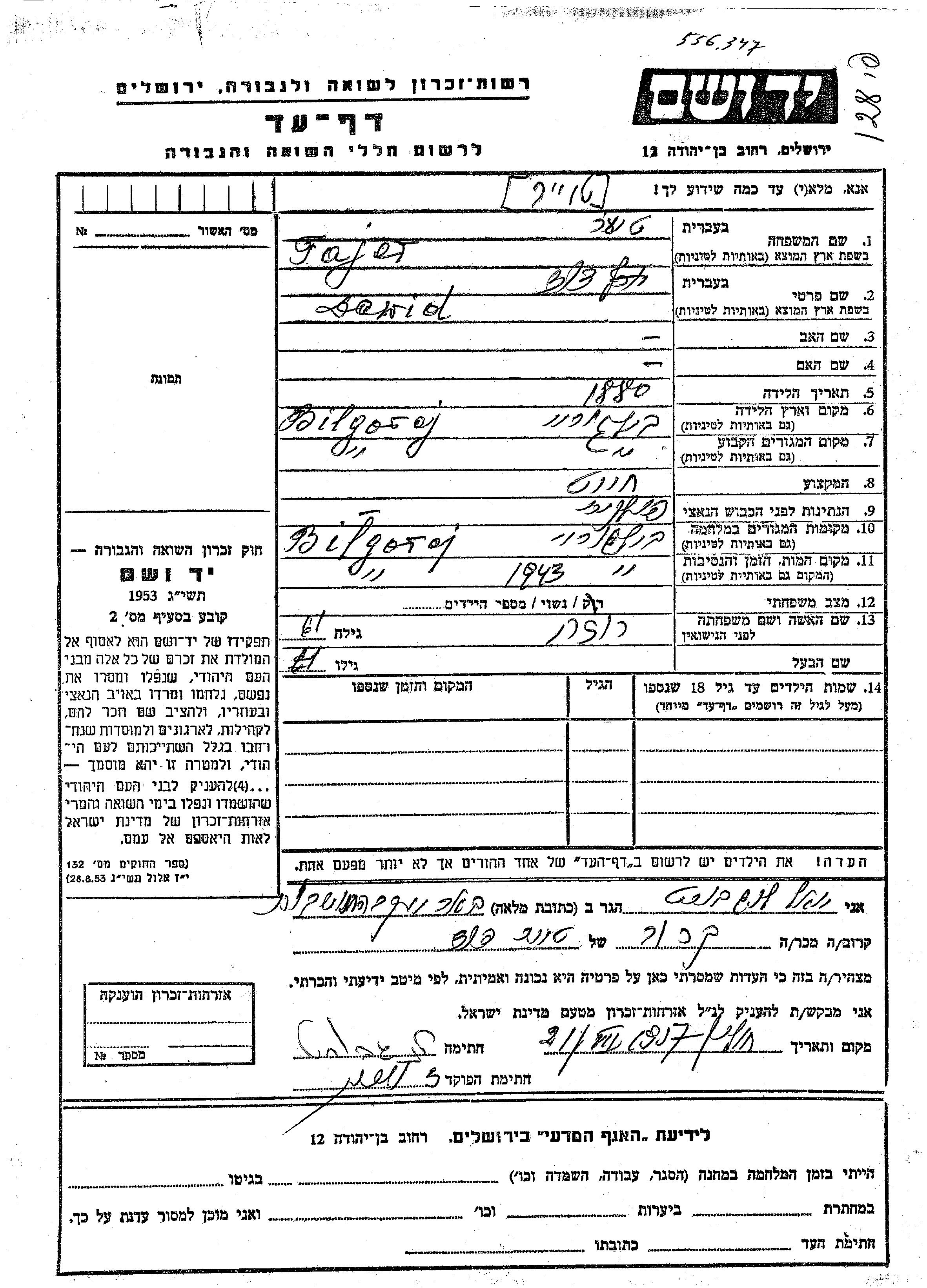 Яд Вашем - Листы свидетельских показаний Мемориального фонда