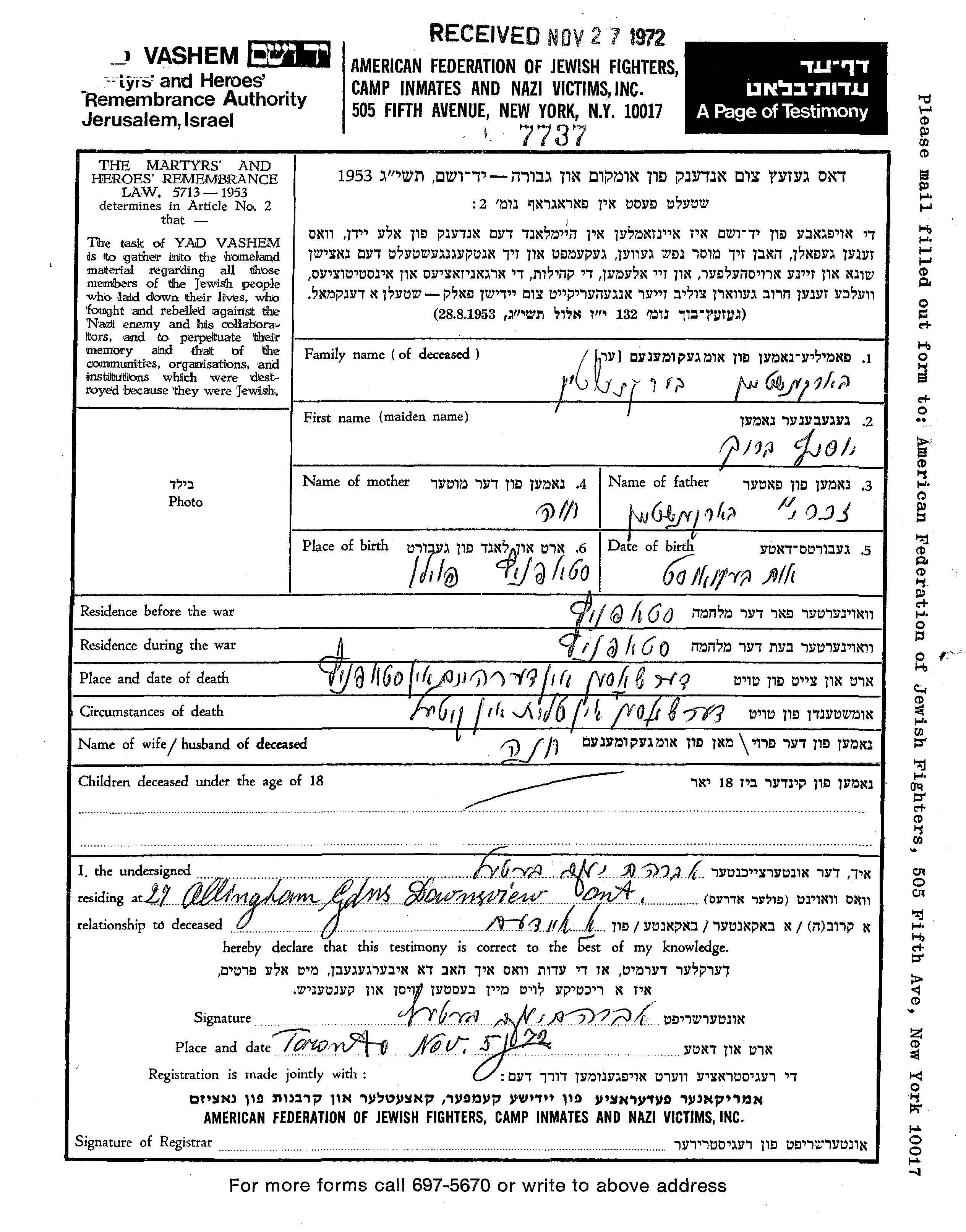 Яд Вашем - Листы свидетельских показаний Мемориального фонда