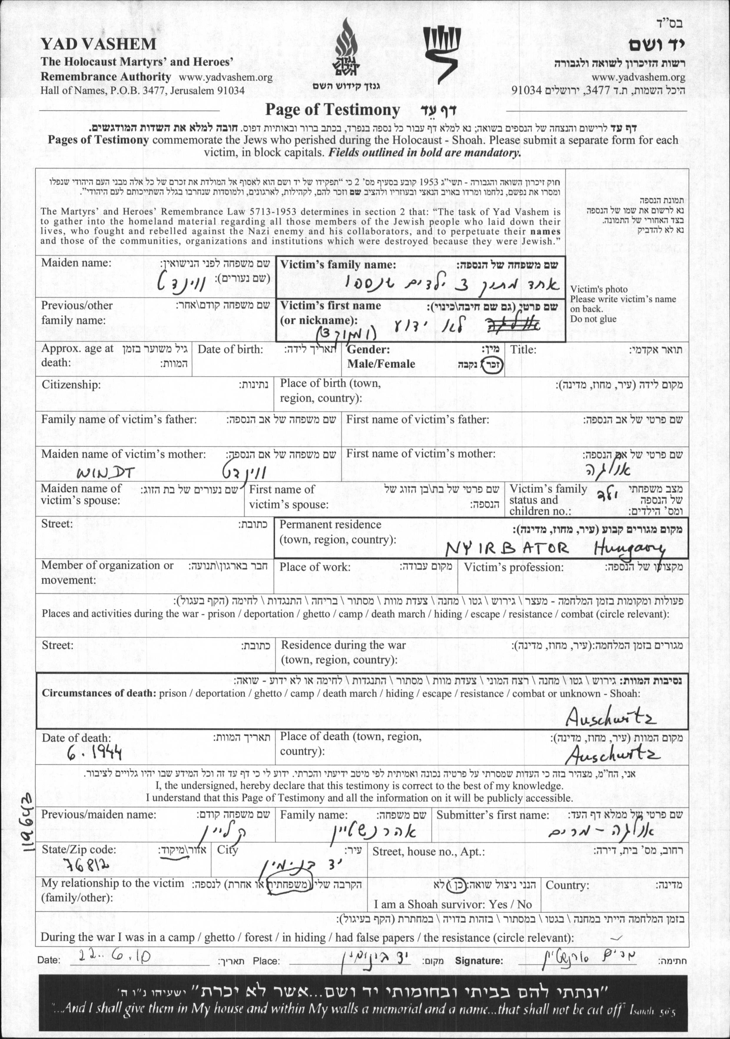 Поиск подателя Листа свидетельских показаний. Поиск по любому имени, включая уменьшительное или прозвище