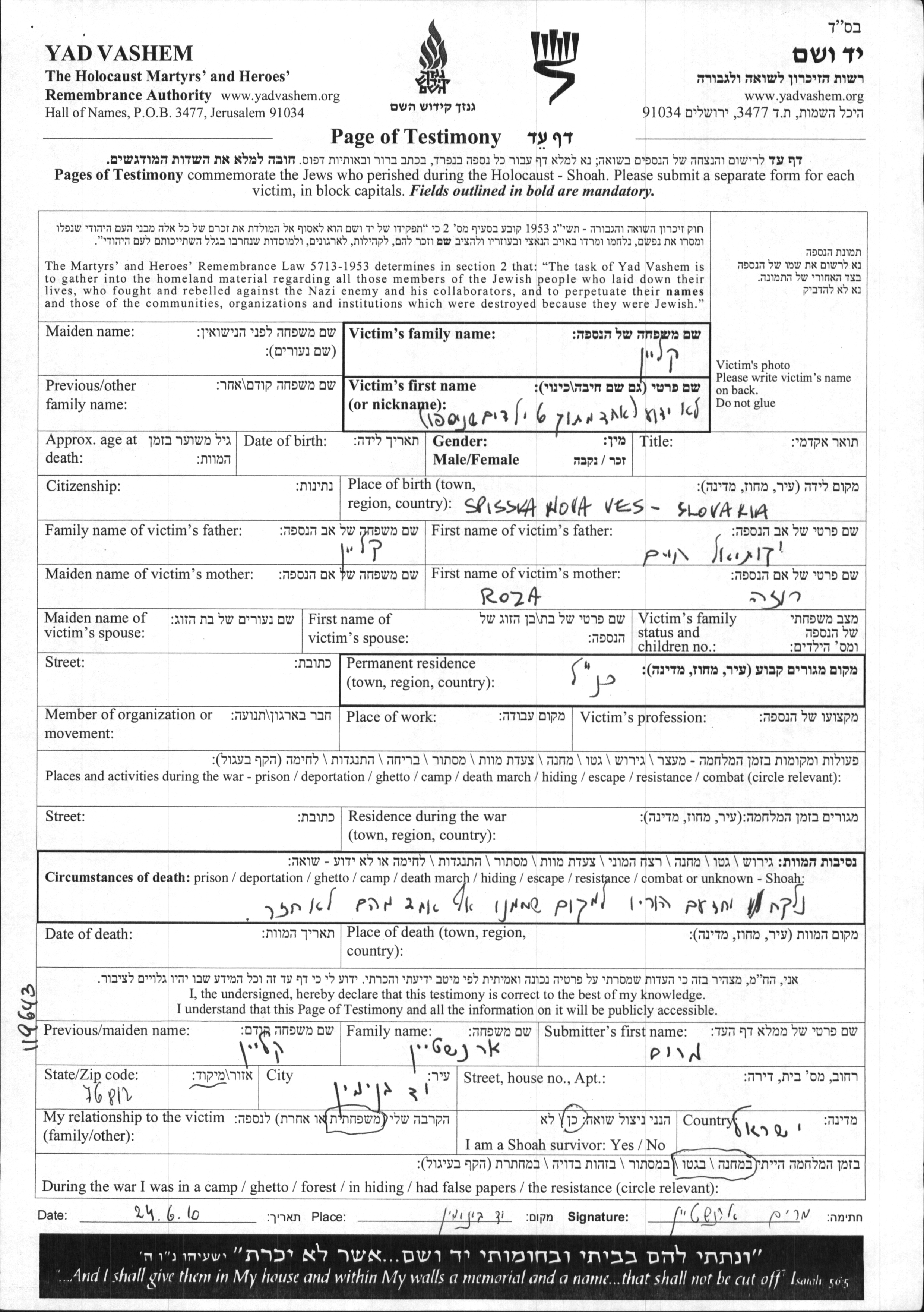 Яд Вашем - Листы свидетельских показаний Мемориального фонда