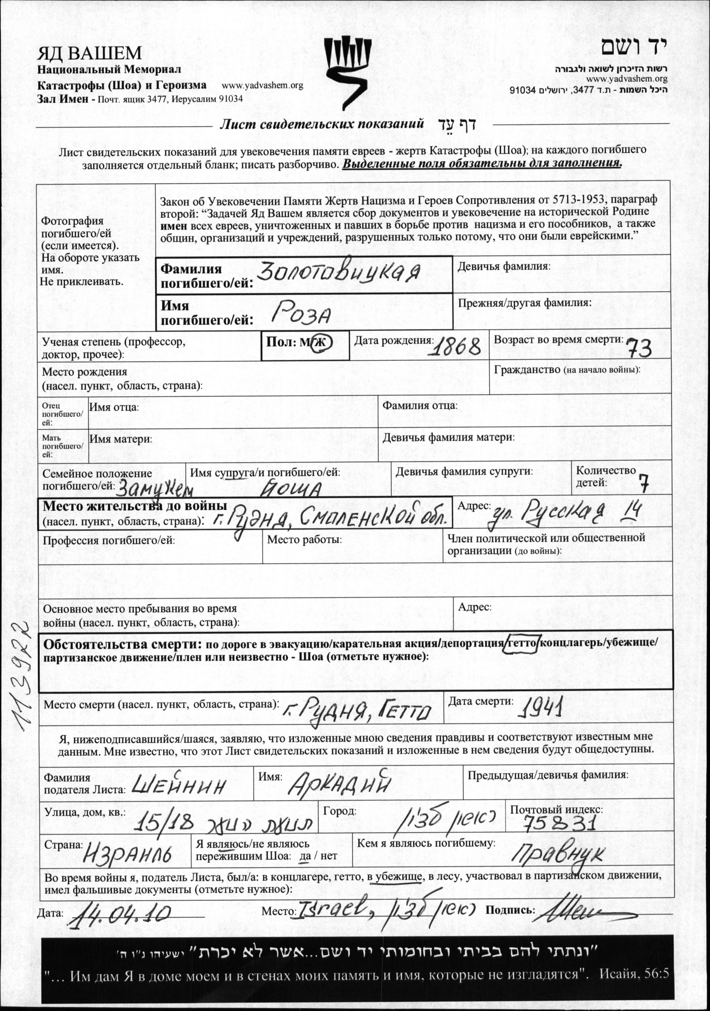 Поиск подателя Листа свидетельских показаний. Поиск по любому имени, включая уменьшительное или прозвище