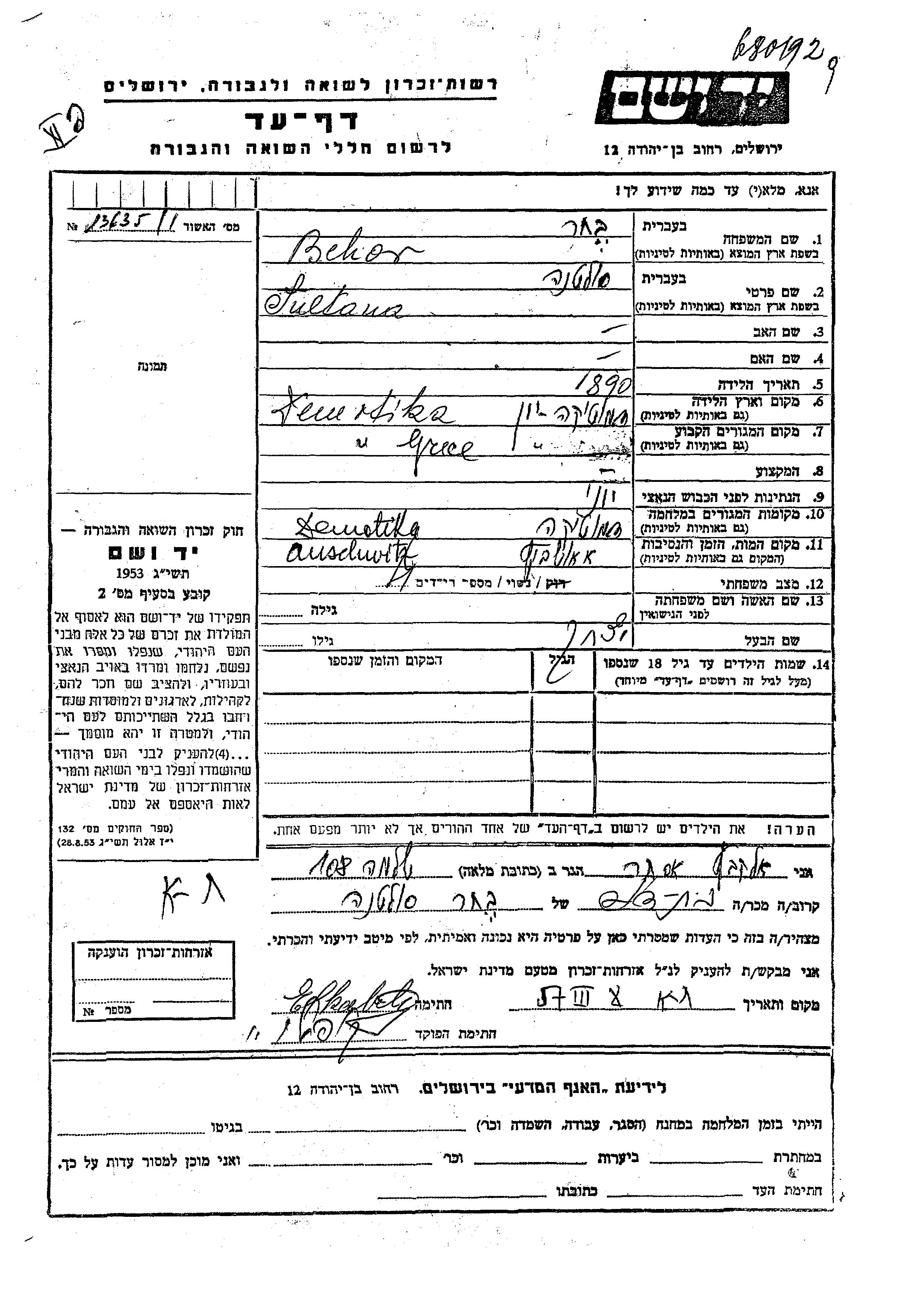 Султана Бехор Бахар, место рождения: Дидимотихон, Греция. Женат / замужем. Место жительства до войны: Дидимотихон, Греция. Место во время войны: Дидимотихон, Греция.