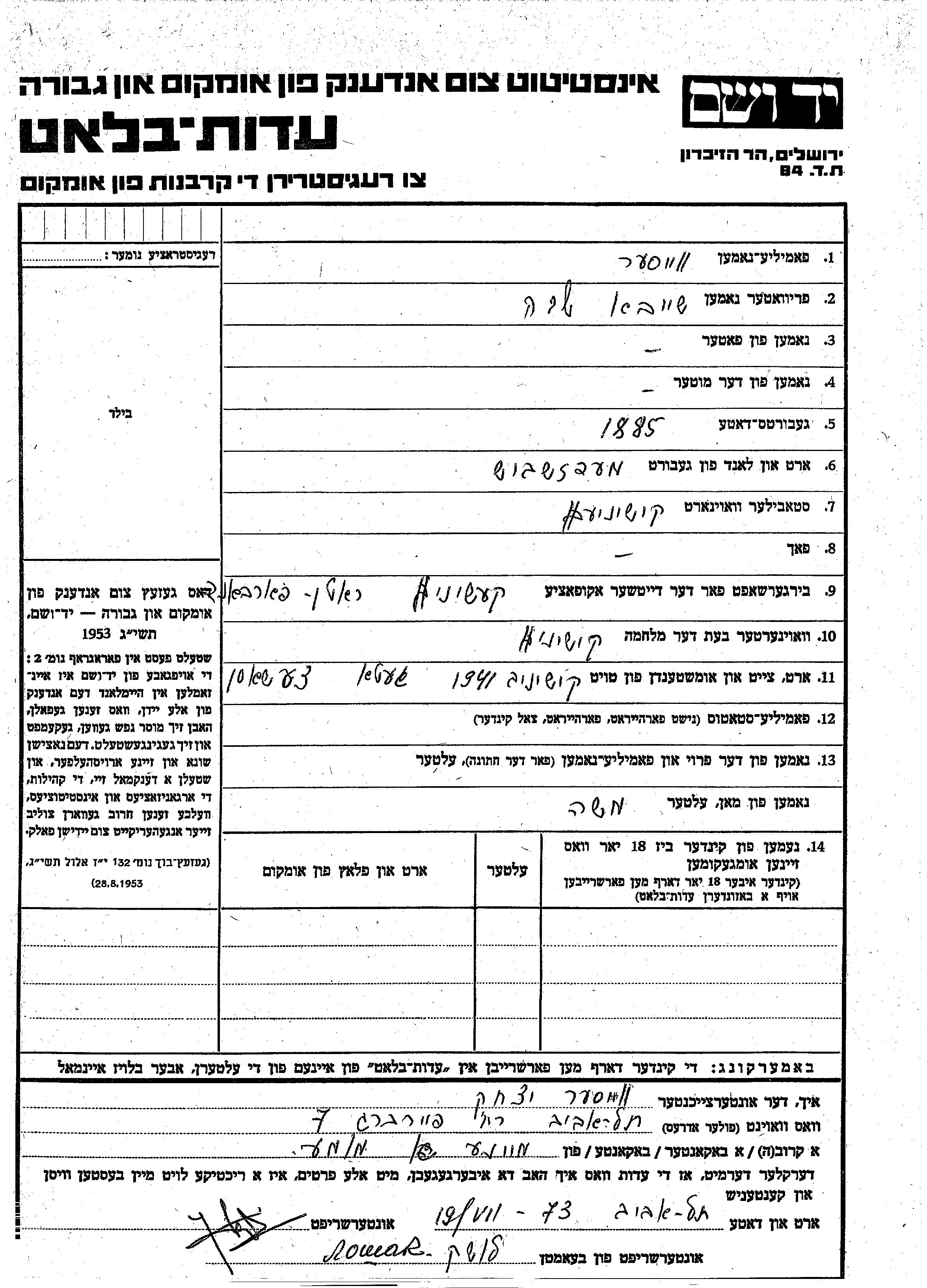 Яд Вашем - Листы свидетельских показаний Мемориального фонда
