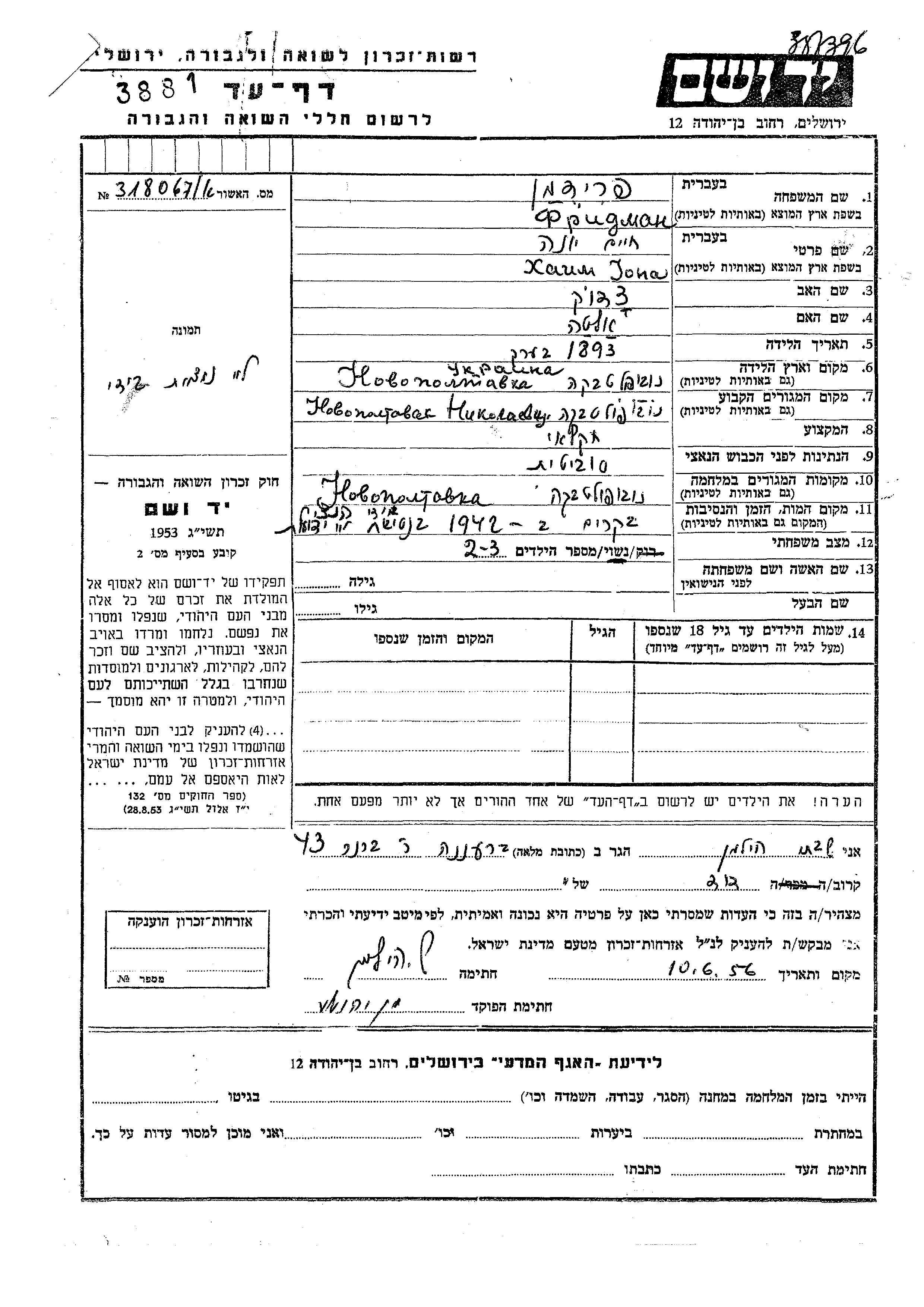 Яд Вашем - Листы свидетельских показаний Мемориального фонда