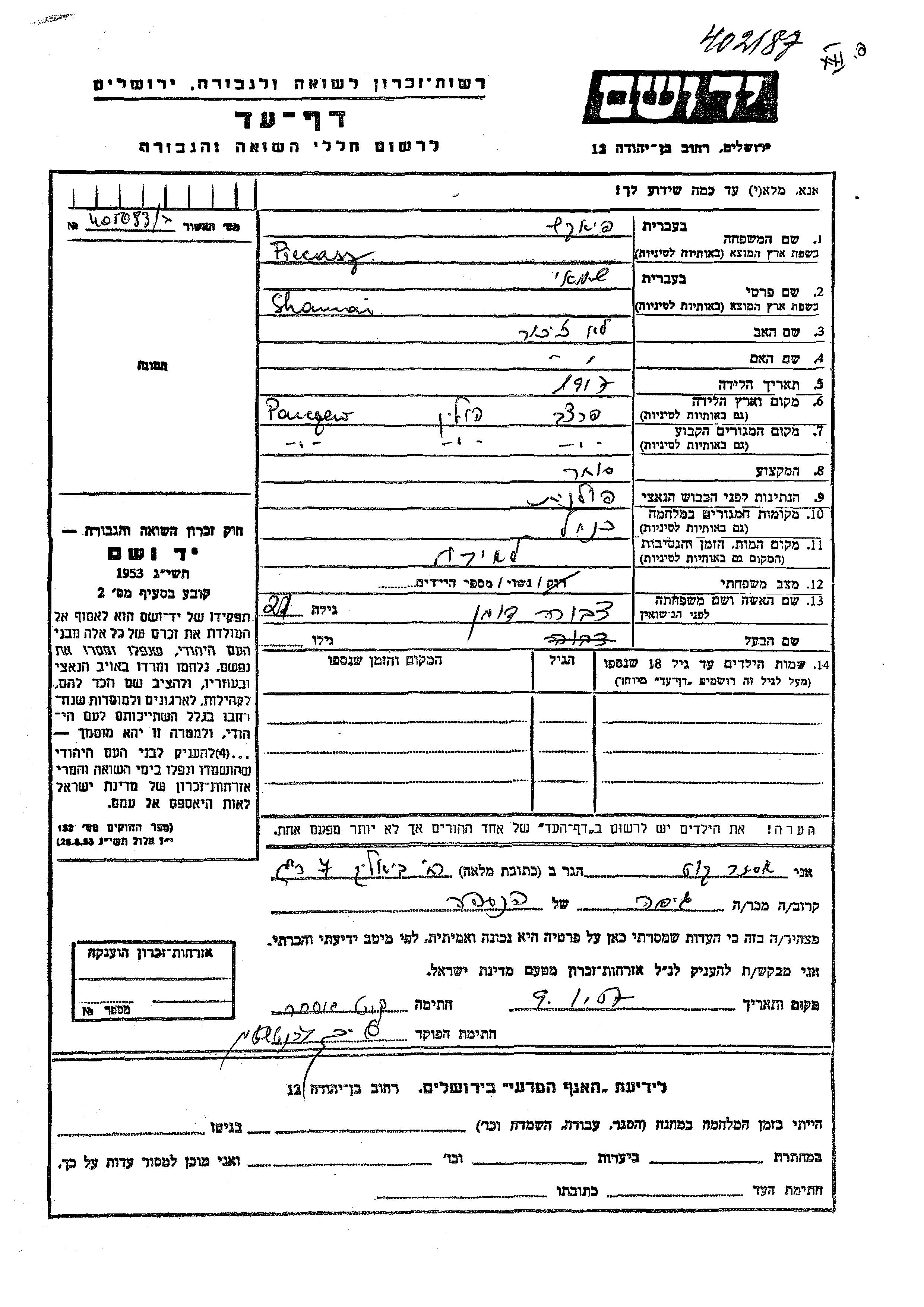 Яд Вашем - Листы свидетельских показаний Мемориального фонда