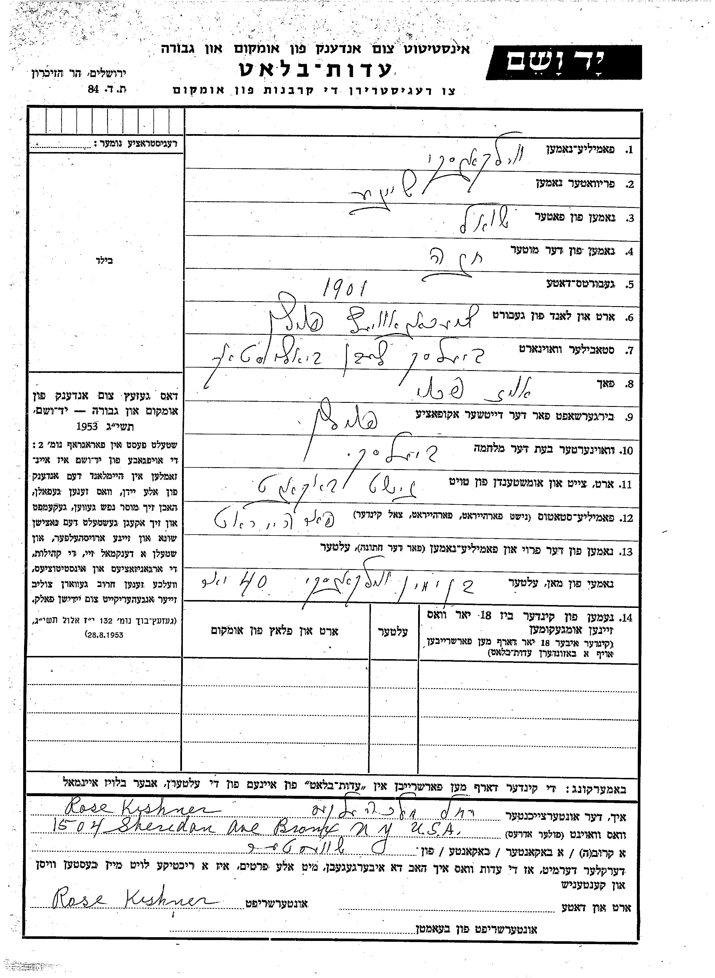 Вилковски Шейне 1901 Бельск-Подляски, Польша Лист свидетельских показаний