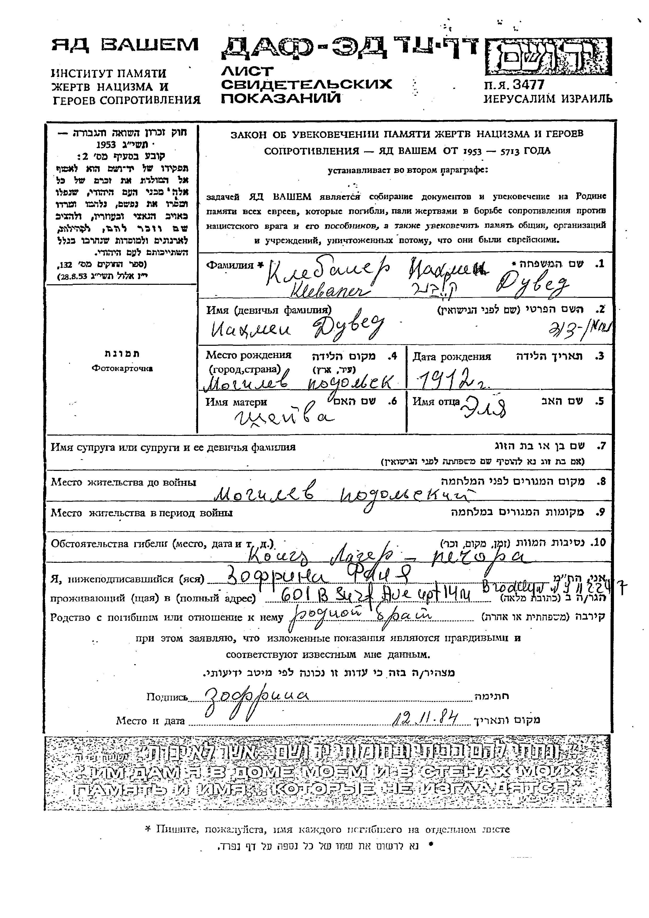 Поиск подателя Листа свидетельских показаний. Поиск по любому имени, включая уменьшительное или прозвище