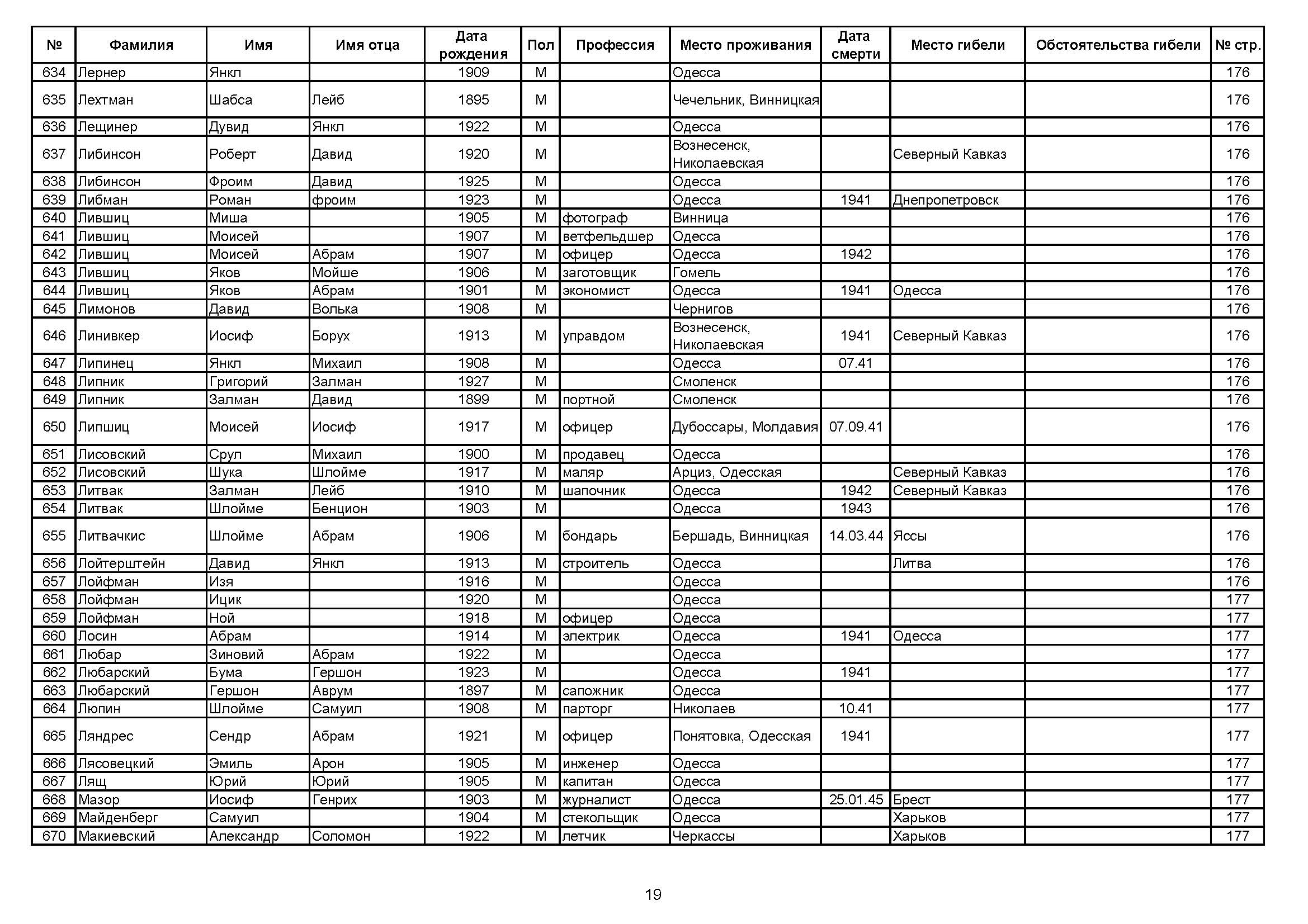 Липшиц Моисей 1917 Дубоссары, Украина (СССР) Список преследуемых / пострадавших лиц