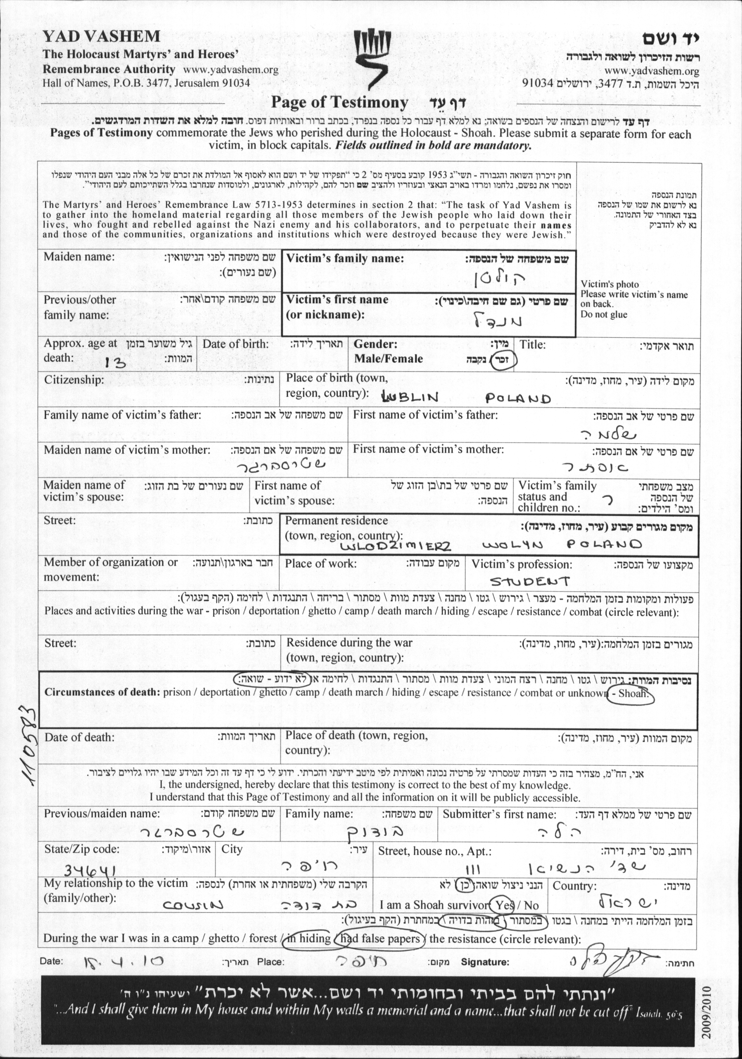 Во время Шоа евреев уничтожали разными способами: газовые камеры, расстрелы, их заживо хоронили или сжигали, непосильным принудительным трудом, голодом, эпидемиями, отсутствием минимальных гигиенических условий и медицинского обслуживания, и т.д. Некоторые евреи добровольно расстались со своей жизнью, чтобы избежать ареста и дальнейших преследований или чтобы покончить с безысходностью и бесконечными страданиями. Десятки тысяч еврейских солдат, служивших в Советской армии и попавших в плен, , были отобраны как евреи и убиты. Многие были зарегистрированы как «пропавшие без вести».