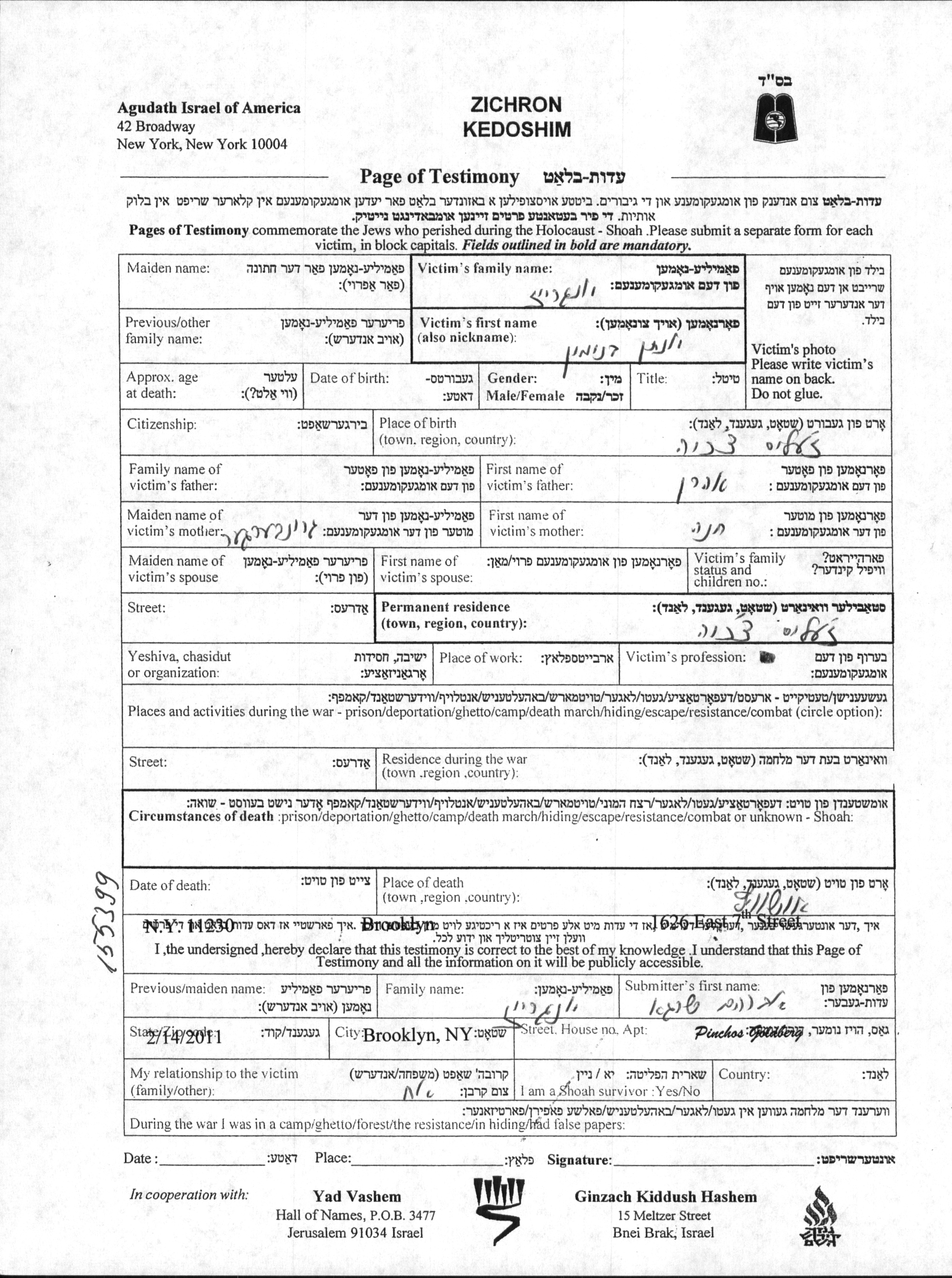 Яд Вашем - Листы свидетельских показаний Мемориального фонда