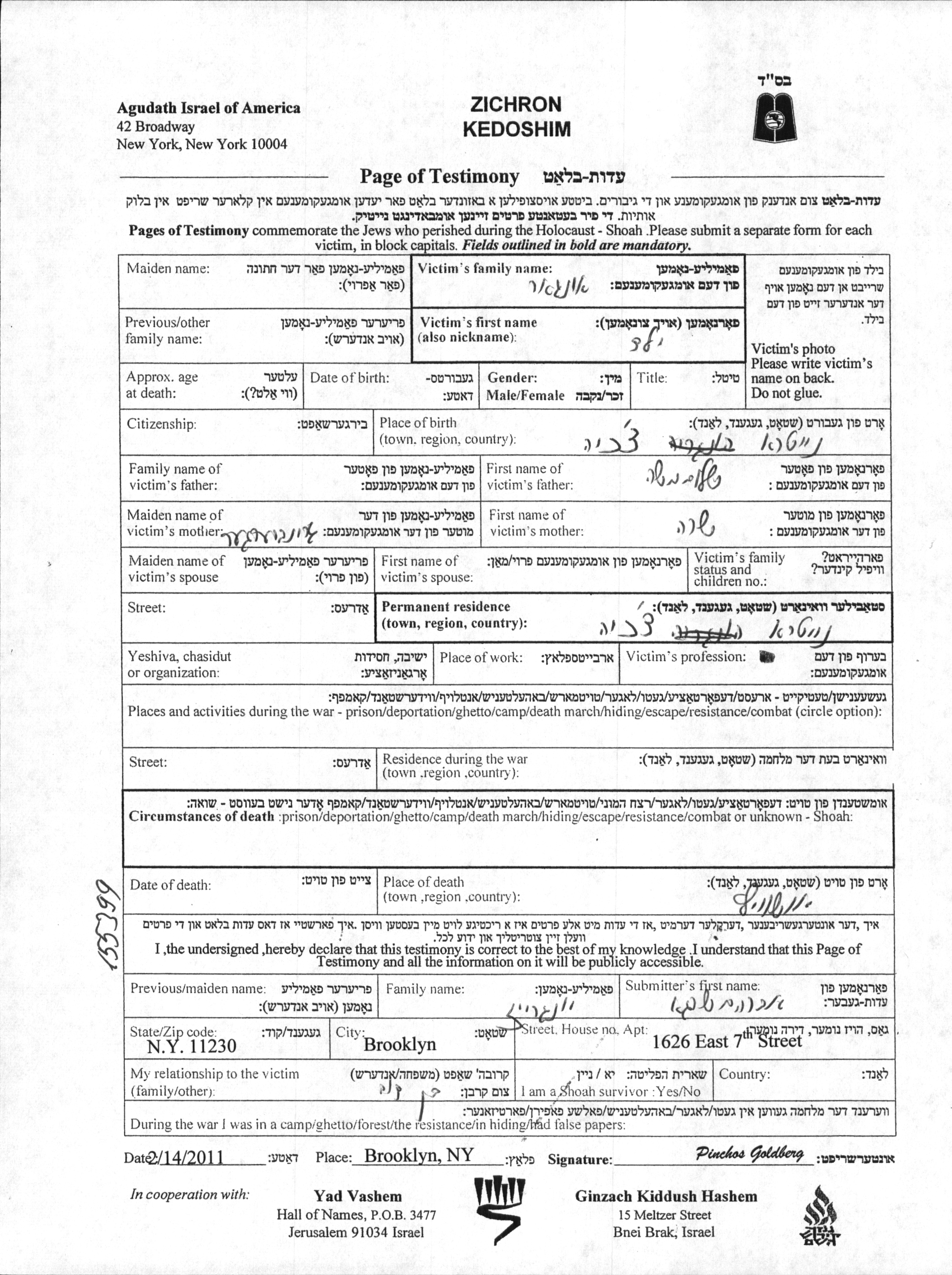 Яд Вашем - Листы свидетельских показаний Мемориального фонда