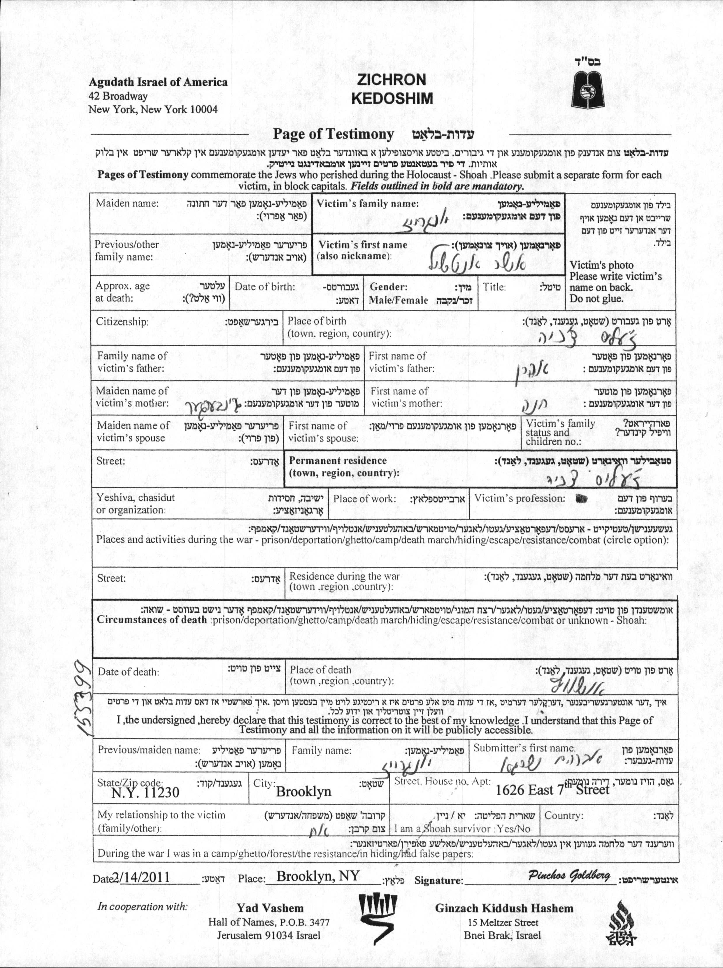 Яд Вашем - Листы свидетельских показаний Мемориального фонда