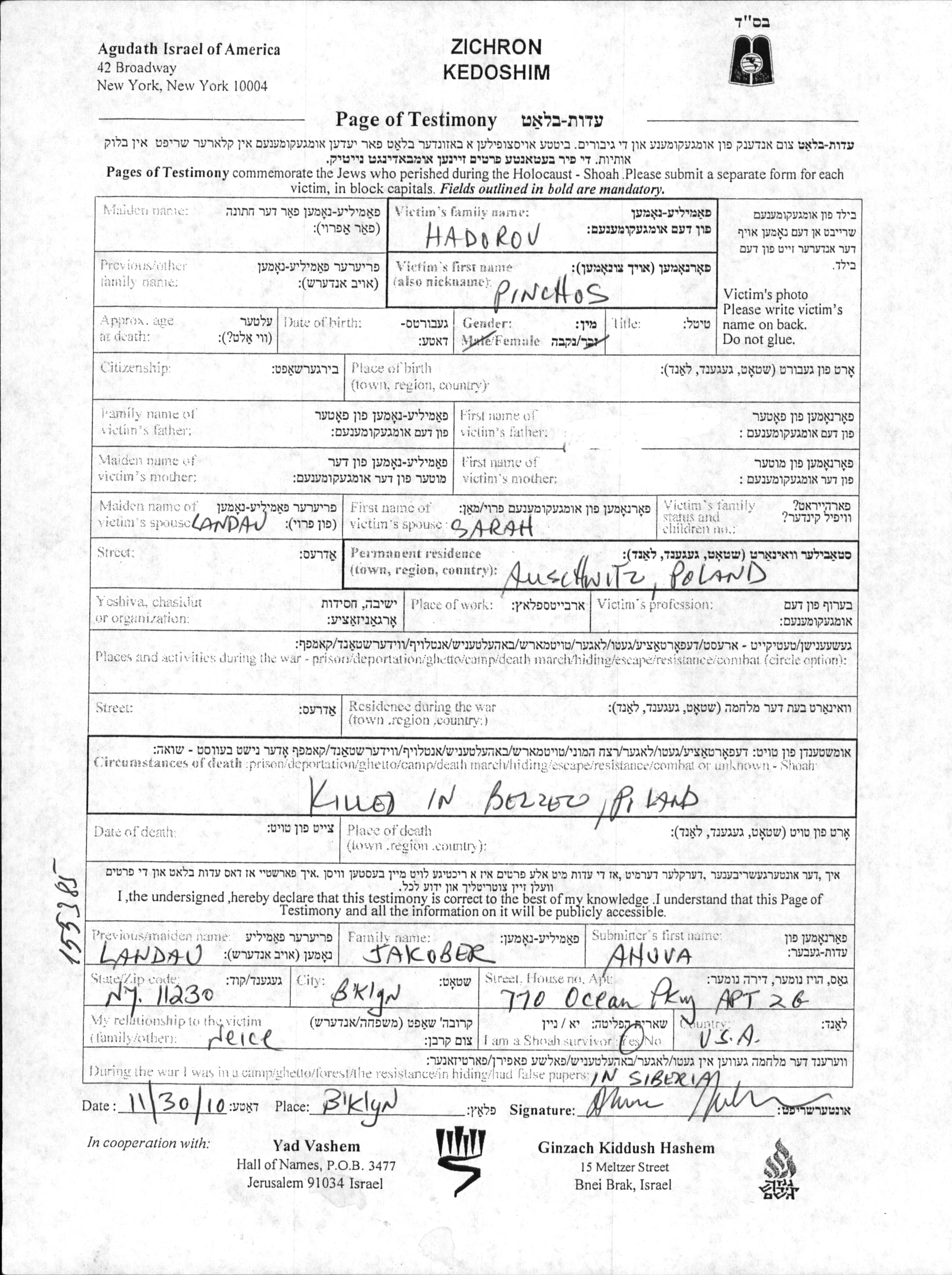 Во время Шоа евреев уничтожали разными способами: газовые камеры, расстрелы, их заживо хоронили или сжигали, непосильным принудительным трудом, голодом, эпидемиями, отсутствием минимальных гигиенических условий и медицинского обслуживания, и т.д. Некоторые евреи добровольно расстались со своей жизнью, чтобы избежать ареста и дальнейших преследований или чтобы покончить с безысходностью и бесконечными страданиями.