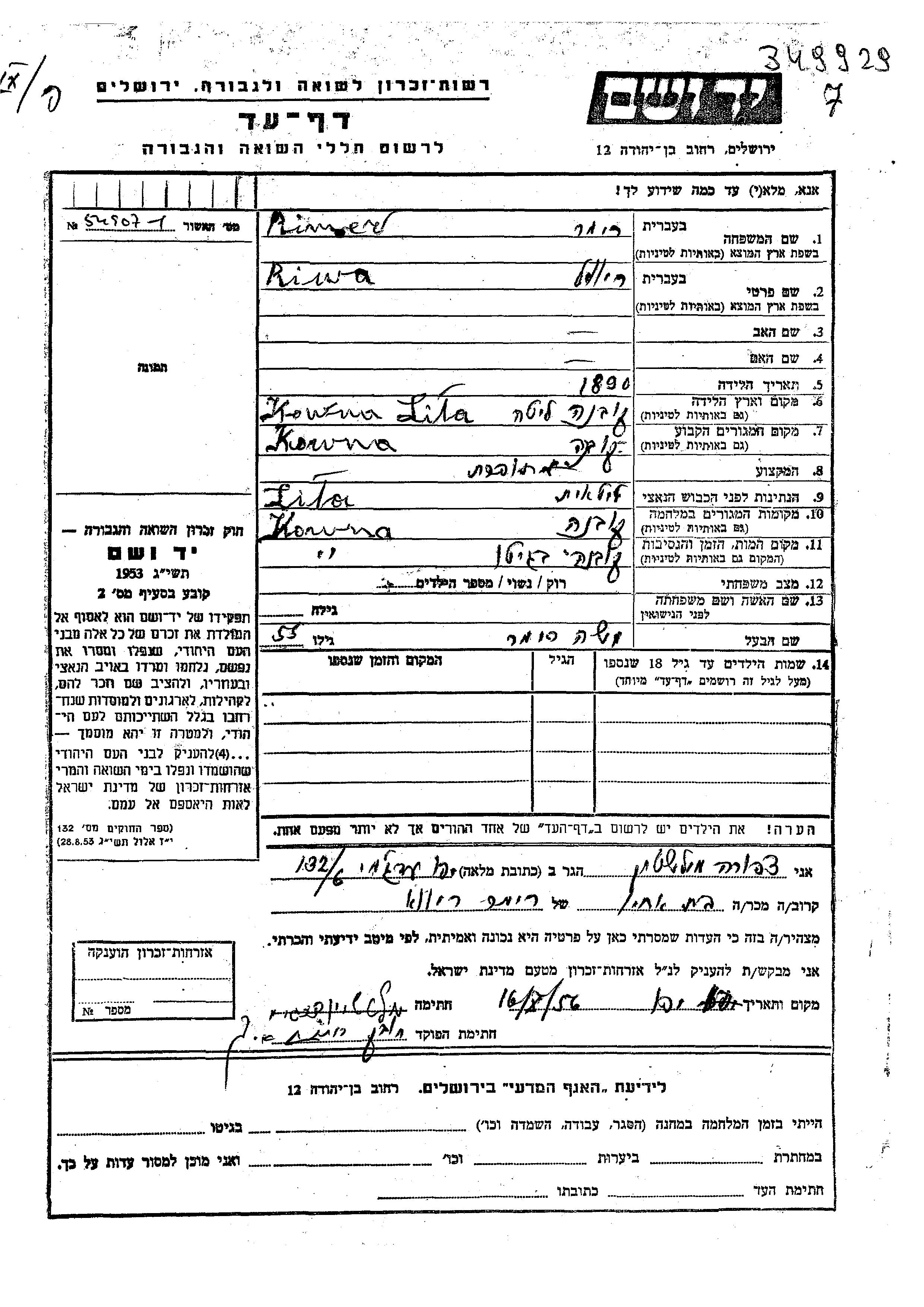 Рива Ример, место рождения: Ковна, Литва. Швея. Женат / замужем. Место жительства до войны: Ковна, Литва. Место во время войны: Ковна, Литва.