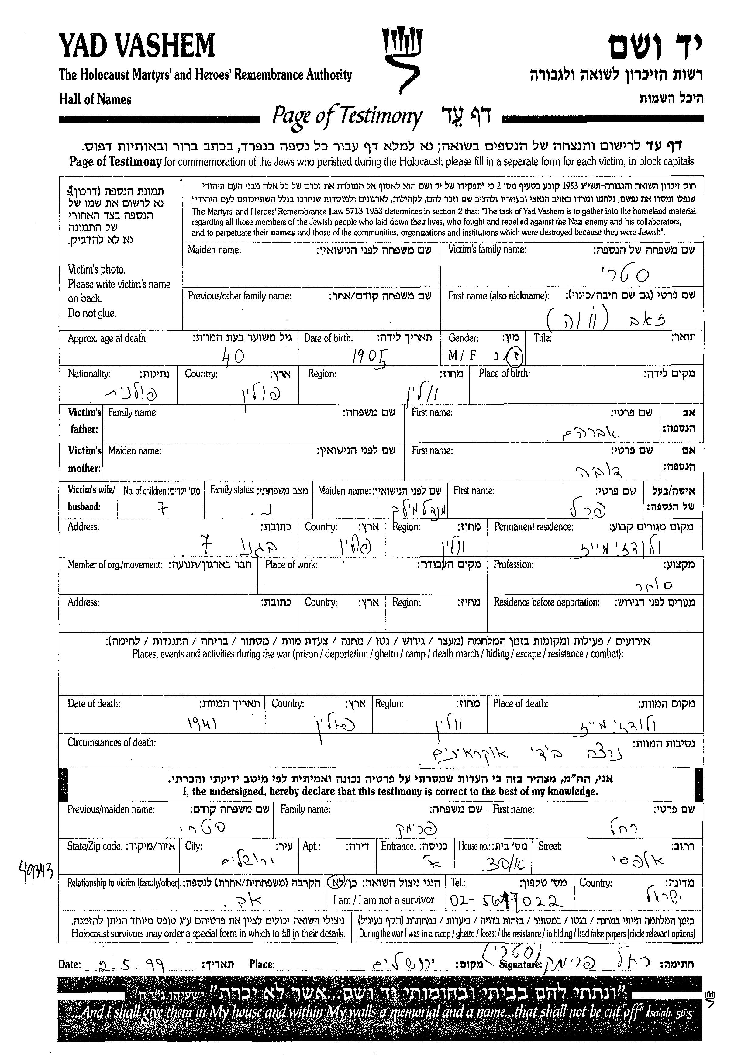 Яд Вашем - Листы свидетельских показаний Мемориального фонда