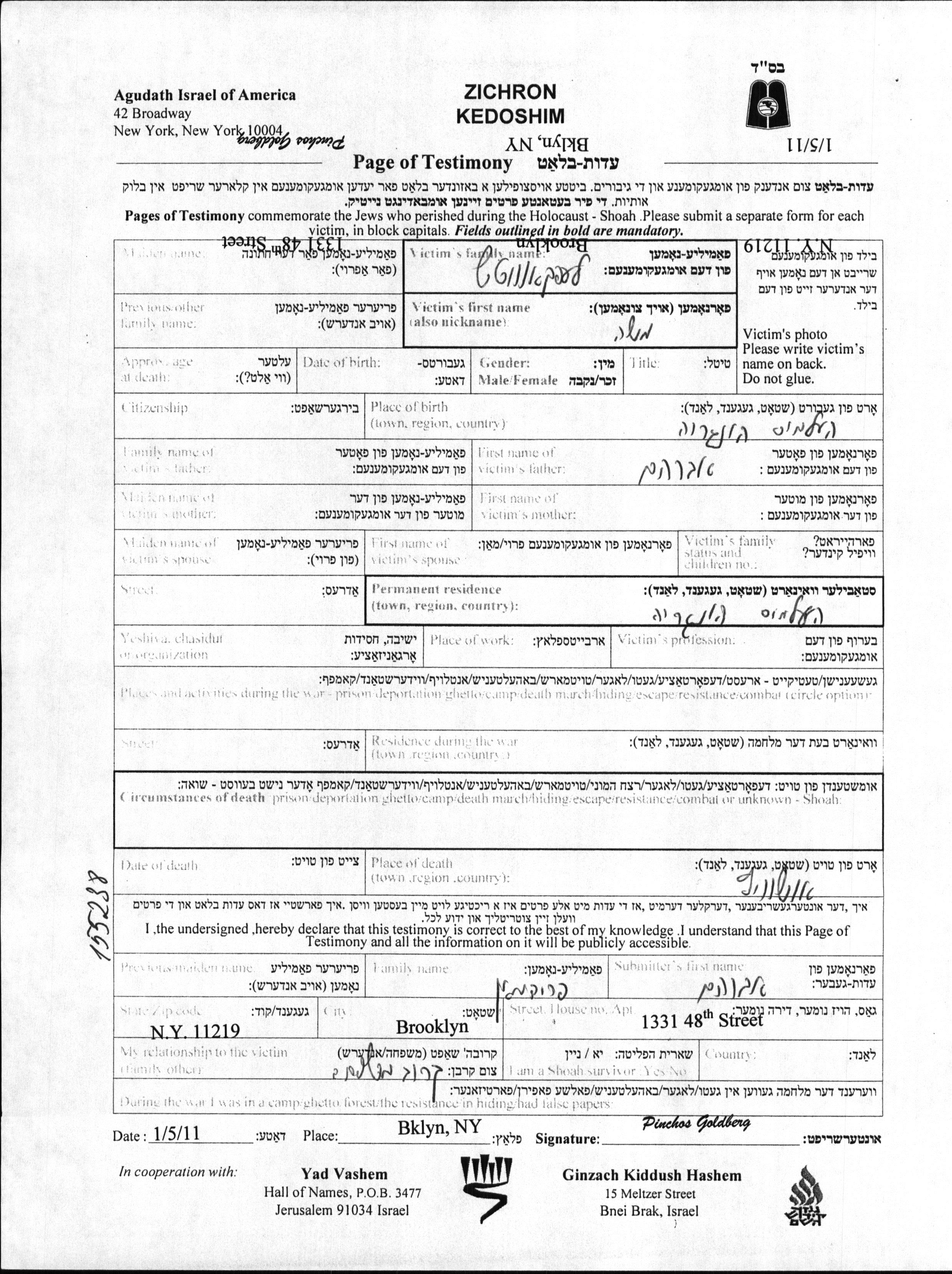 Поиск подателя Листа свидетельских показаний. Поиск по любому имени, включая уменьшительное или прозвище