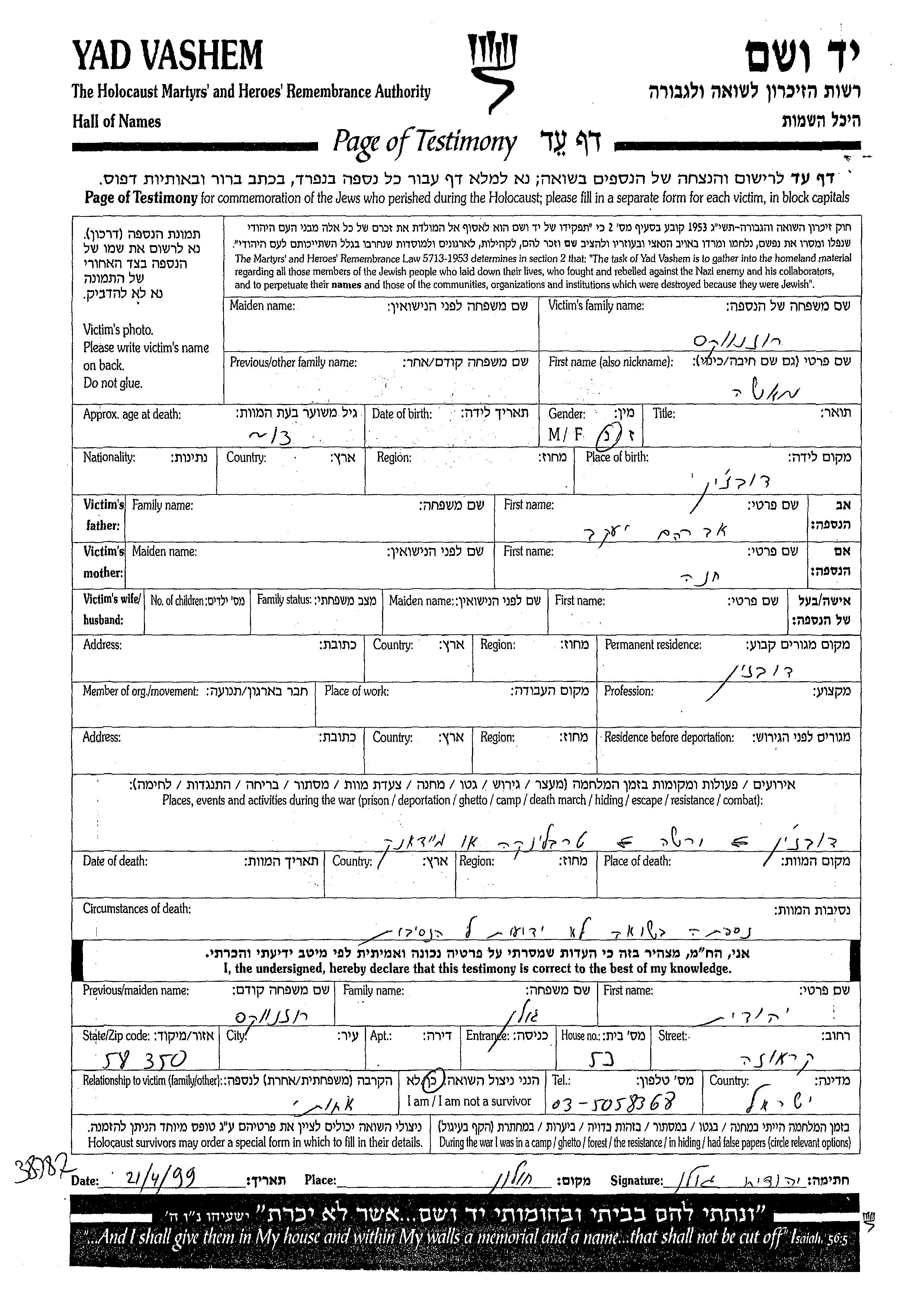 Яд Вашем - Листы свидетельских показаний Мемориального фонда