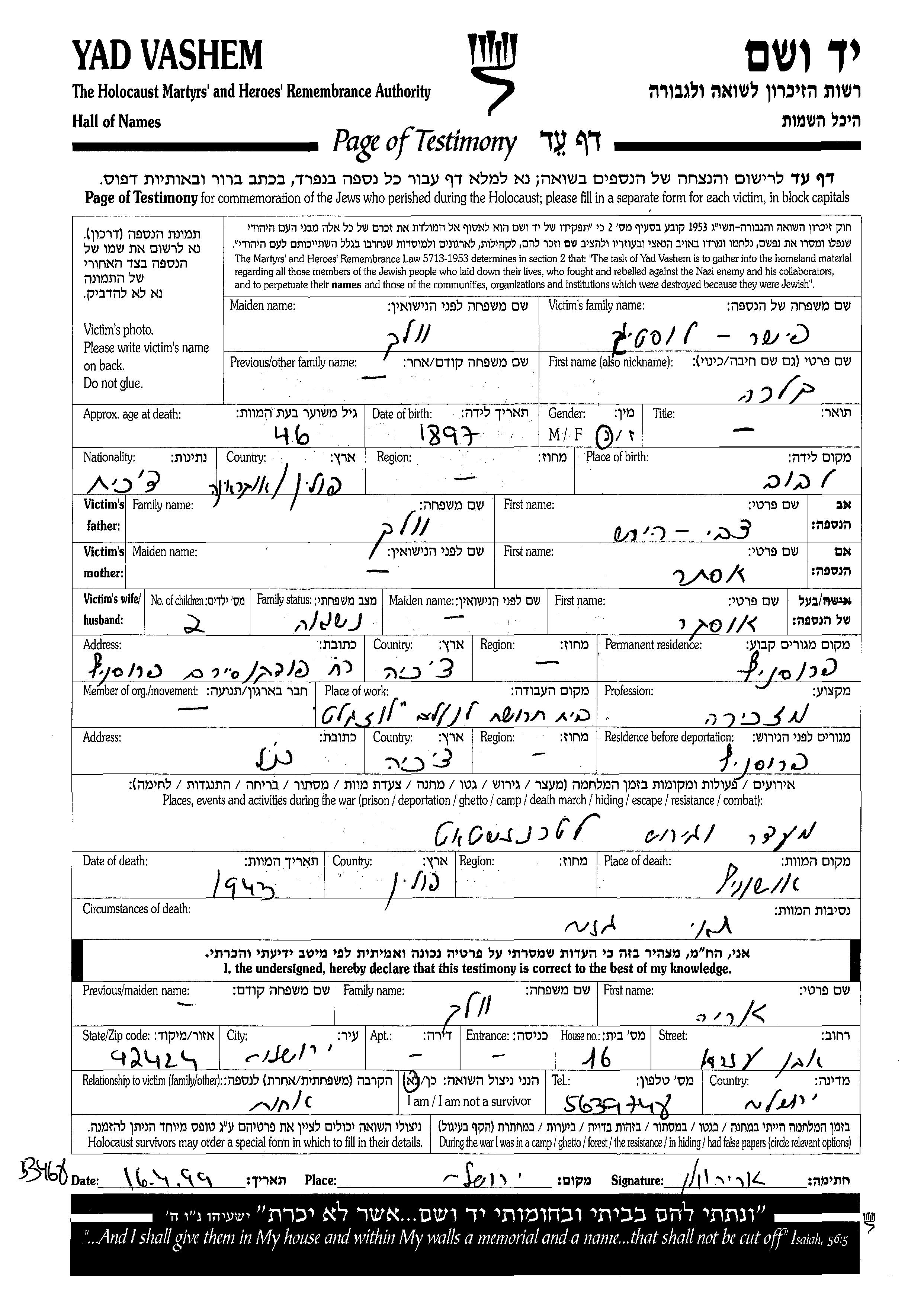 Яд Вашем - Листы свидетельских показаний Мемориального фонда