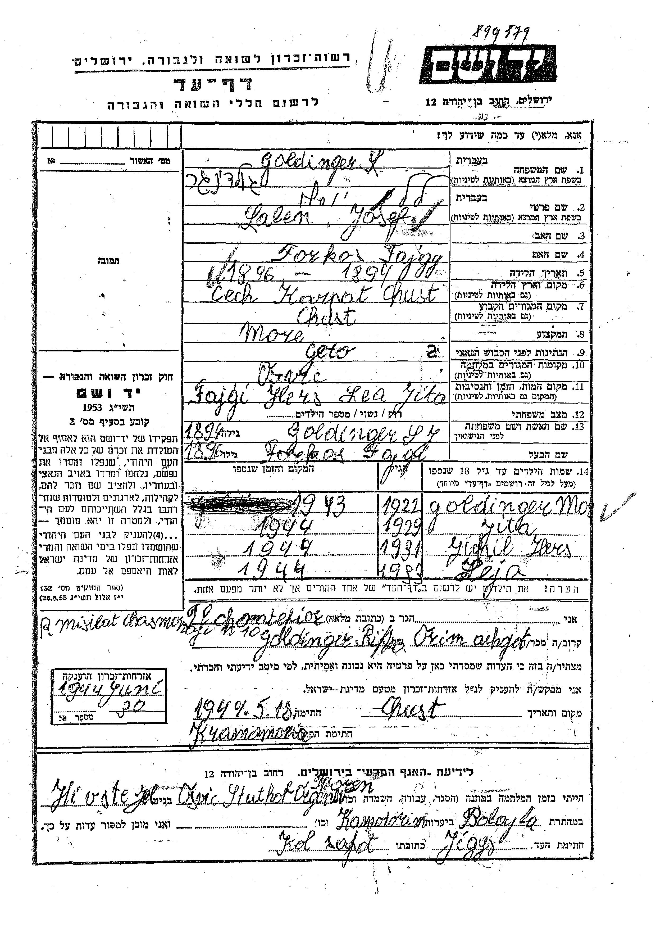 Гольдингер | Лален Йосеф | 1894 | Хуст, Чехословакия | Лист свидетельских показаний |